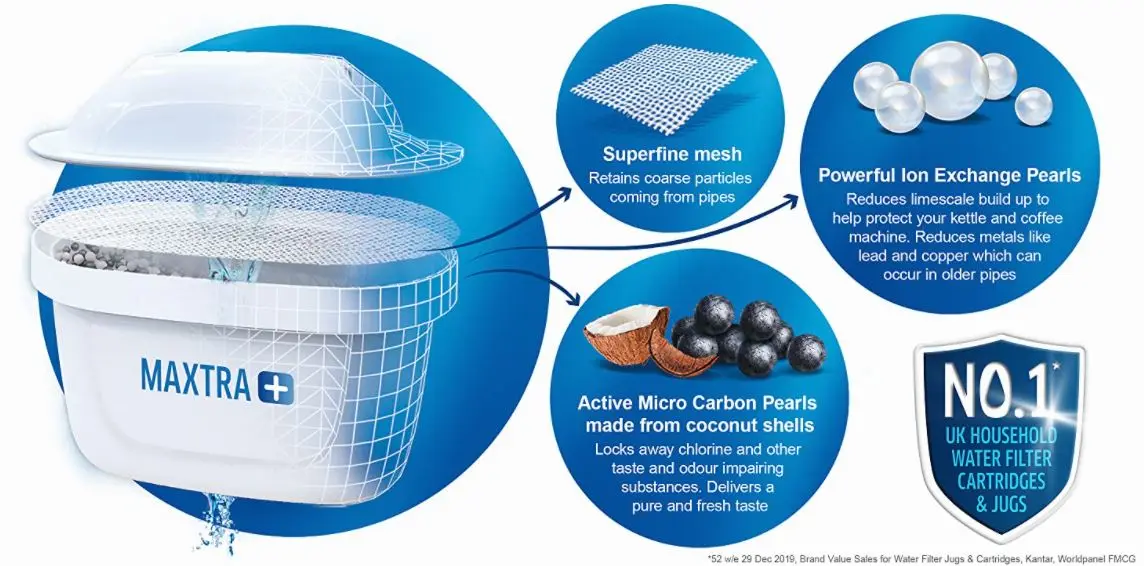 Совместим со всеми кувшинами BRITA, в том числе с функцией «perfectfit» (Aluna, Marella, Style)Микроуглеродный жемчуг уменьшает хлор и примеси для улучшения вкуса и внешнего вида продуктов питания и напитков.Ионообменный жемчуг постоянно поглощает свинец и медь и уменьшает накипи, для защиты прибораРекомендуется Британской академией чая и потребителями-96% согласны, что чай более блестящий с MAXTRA + фильтрованной водойСвежая отличная дегустационная вода, без отходов бутилированной воды всего за несколько пенсов за литрФильтрующие Картриджи MAXTRA + работают около 4 недель и подлежат вторичной переработке