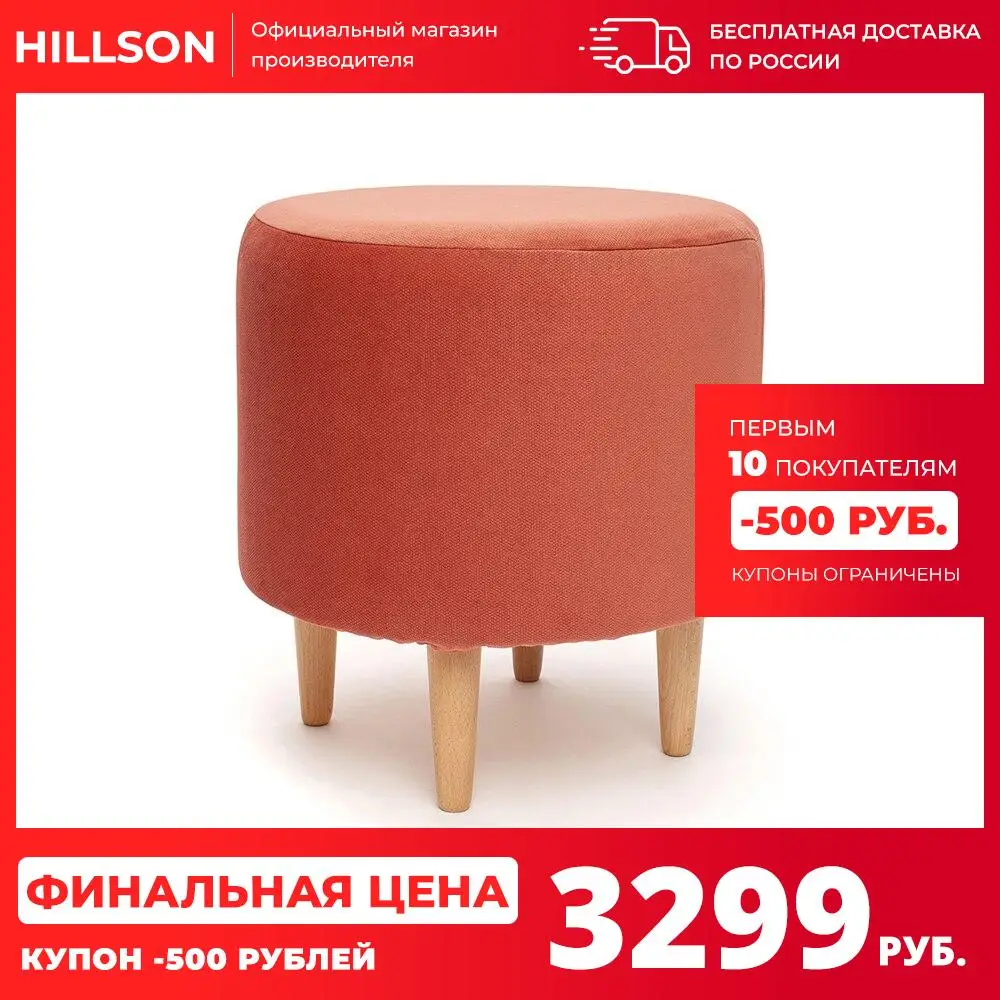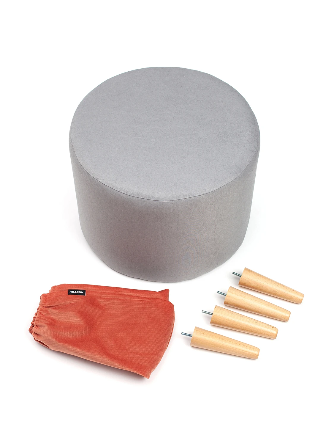 Пуфик со съемным чехлом, высота 45 см, диаметр 42 см, опоры из натурального дерева (бук) покрытые защитным бесцветным лаком (Италия). Каркас из шлифованной березовой фанеры высшего сорта 2/2, натуральное дерево, это значит, что пуф экологичный и надежный, нагрузка до 160 кг. Для того, чтобы вам было удобно и мягко на нем сидеть мы позаботились о правильно подобранной пене с повышенными характеристиками плотности, которая позволяет достичь баланс между комфортом и долговечностью пуфа, периметр тоже мягкий. В комплекте идет съемный текстильный чехол, его можно легко постирать или купить дополнительную расцветку. Ткани хорошо очищаются от загрязнений и шерсти животных. Пуф упакован в надежный непромокаемый пакет и картонный короб. Бесплатная гарантия 24 месяца только у нас, так как мы прямой производитель. Если у вас есть вопросы, пожелания, некорректная комплектация, то пишите на адрес claim@hillson.ru мы на оперативной связи.