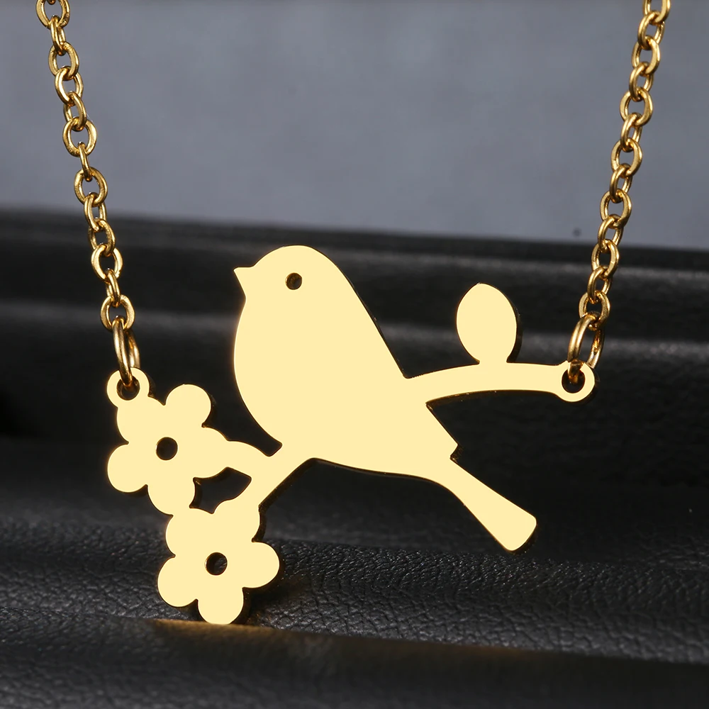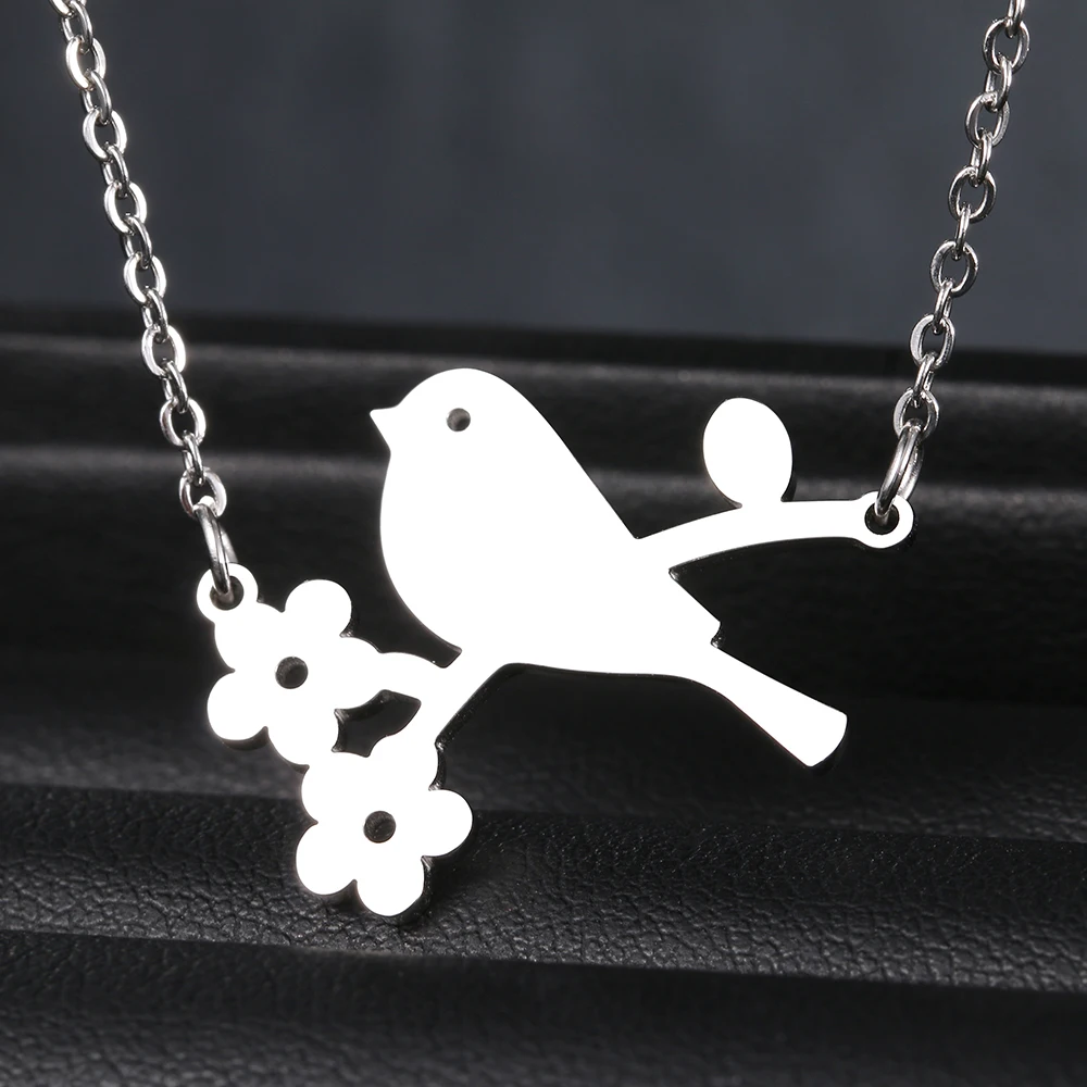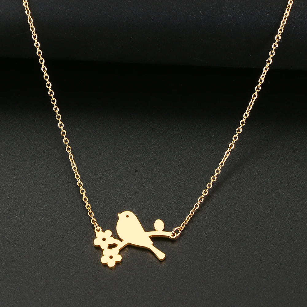 Ожерелья из нержавеющей стали, милая подвеска в виде цветка, птицы, чокер, цепочка до ключиц, изящные модные ожерелья для женщин, ювелирные изделия, подарки для девушек