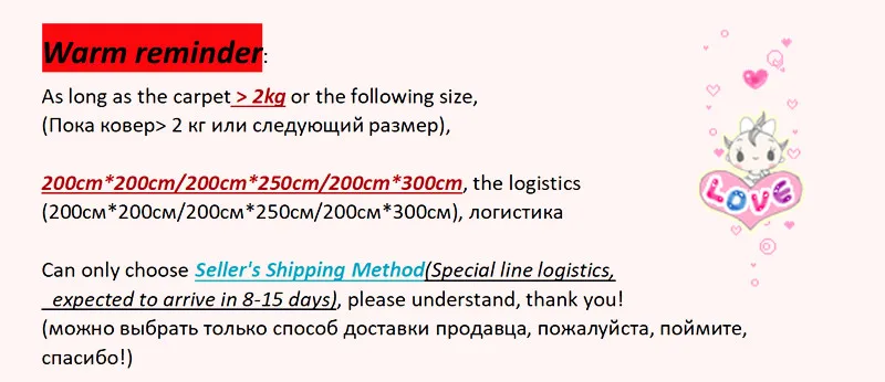 1. Из-за сканирования, съемки и других причин, есть небольшая разница в цвете между фактическим продуктом и изображением. Если вы очень беспокоитесь о цвете, пожалуйста, свяжитесь с онлайн-службой поддержки клиентов, чтобы узнать Фактическое изображение товара;2. Поскольку международная логистика строго ограничивает объем посылка, ковер складывается и посылка d, поэтому вы почувствуете некоторые складки, когда получите посылка, и откроете посылка. Вам просто нужно энергично встряхнуть или нажать на него тяжелым предметом, чтобы сгладить ковер.3. Он сдавливается из-за складывания и упаковки, ковер будет чувствовать себя менее пушистым, когда он будет получен, но вам нужно только встряхнуть ковер, он может быть таким же пушистым, как показано на картинке.4. Поскольку ковер мягкий и имеет определенную степень растягиваемости, возможна погрешность в 1-3 см. Если вы не можете принять это, не рекомендуется покупать его.Пожалуйста, поймите причиненные вам неудобства, если у вас есть какие-либо вопросы, пожалуйста, свяжитесь с нашей онлайн-службой поддержки клиентов!