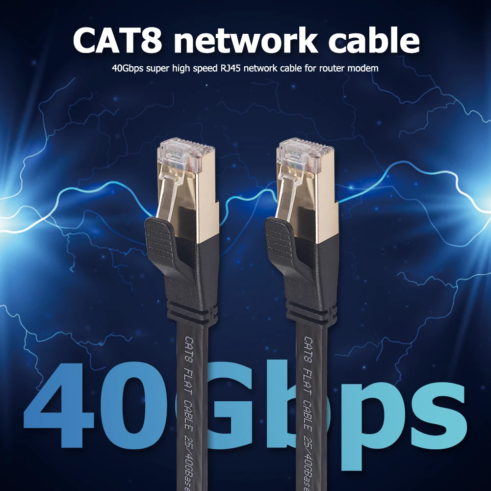 Ethernet-Кабель Cat 8, двойной экранированный плоский сетевой кабел...