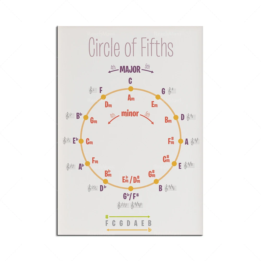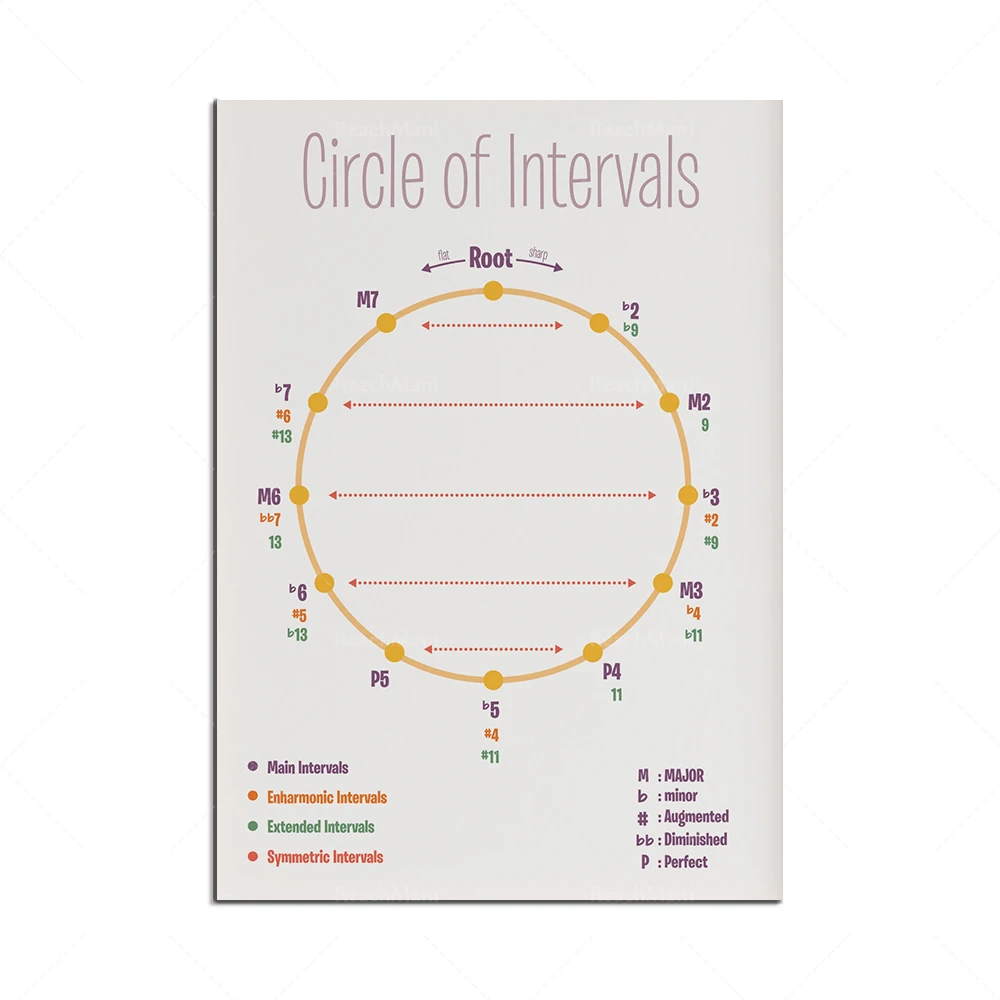 Плакат с пятью кругами-музыкальный интервал, музыкальная теория, музыкальное образование, справочная схема аккорда, фортепиано зал, музыкальный плакат Printi