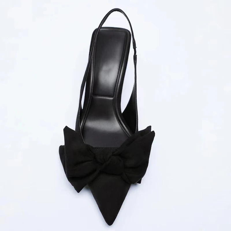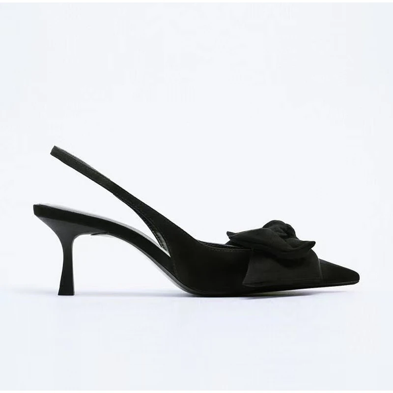 Туфли-лодочки женские на высоком каблуке, однотонные босоножки с ремешком на пятке, заостренный носок, элегантная пикантная обувь, черные, весна 2022