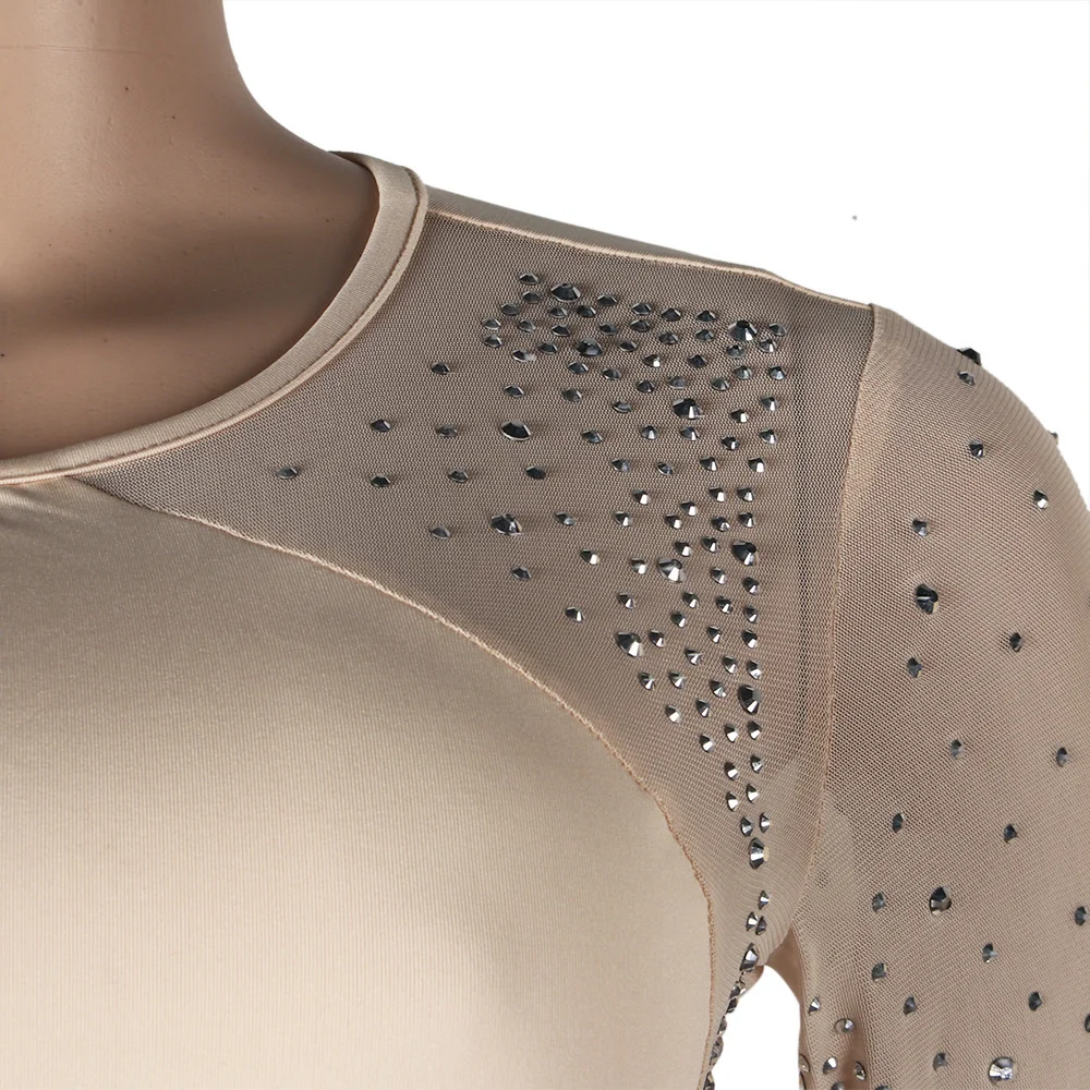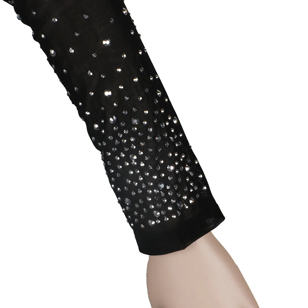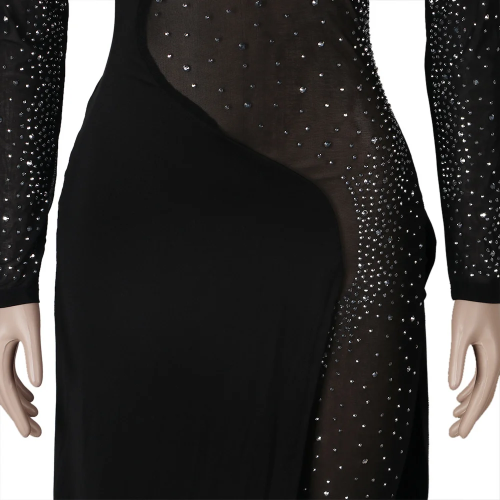 Элегантный женский Облегающий комбинезон с длинным рукавом, вечерний клубный комбинезон с высоким разрезом и стразами, прозрачный облегающий женский праздвечерние чный комбинезон