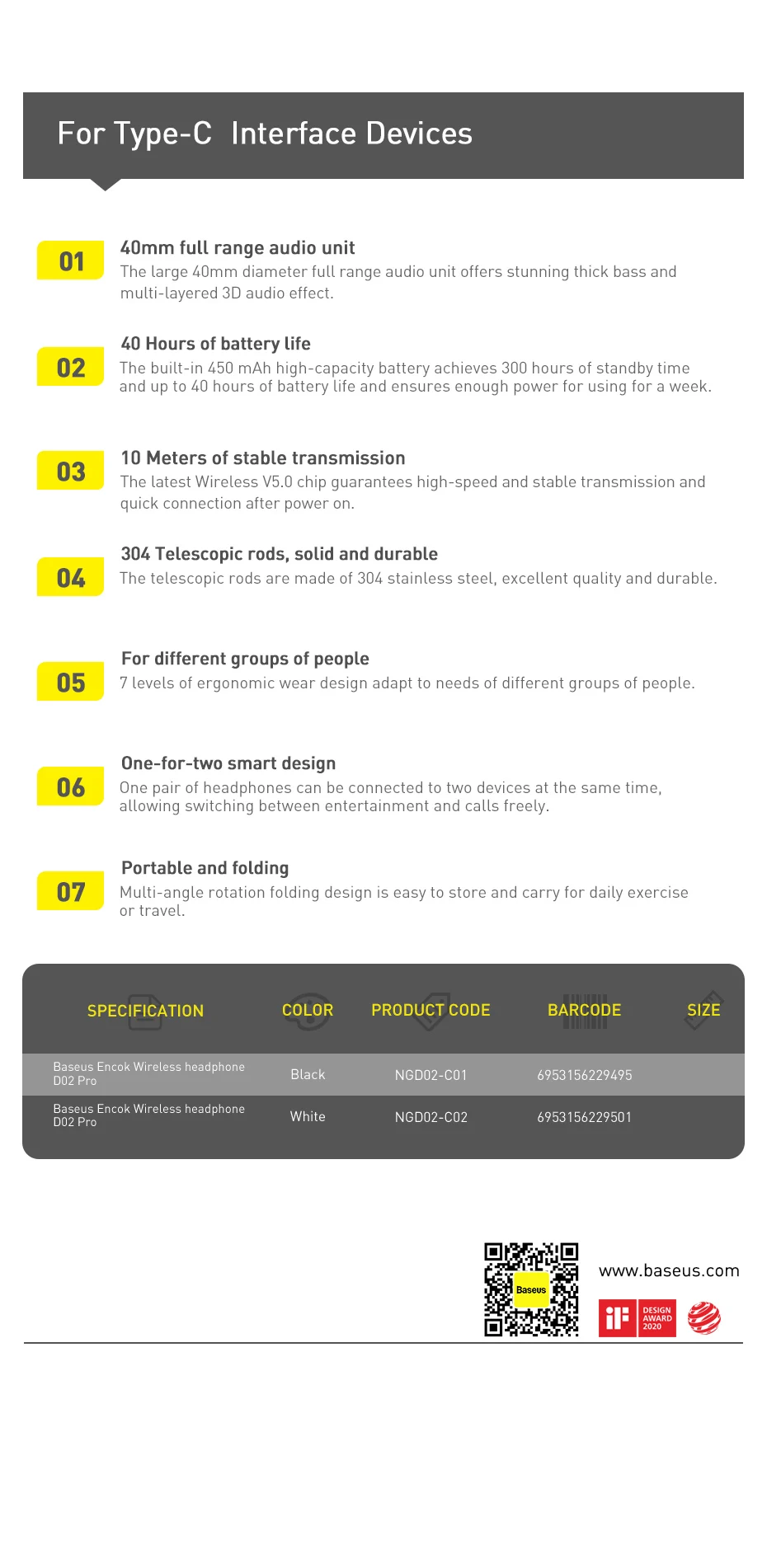 Беспроводные наушники Baseus D02 Pro, Bluetooth 5,0, складная гарнитура, спортивные наушники, игровые Bluetooth-наушники для iPhone