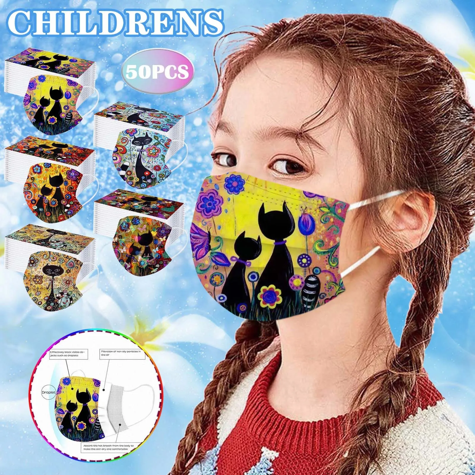 1050 шт., одноразовые маски для лица с рисунком кошек