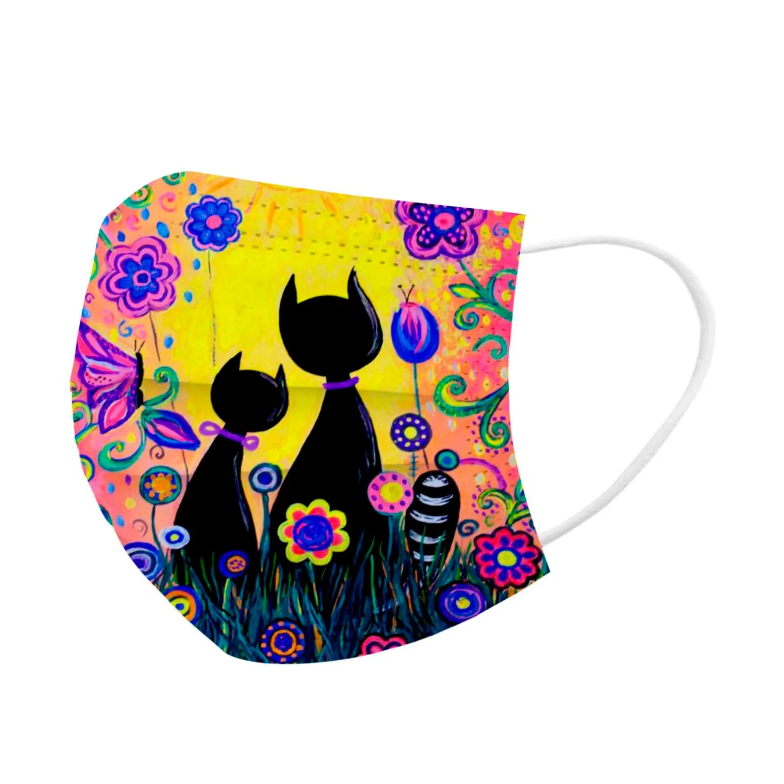 10 шт., одноразовые маски для лица с рисунком животных, кошек