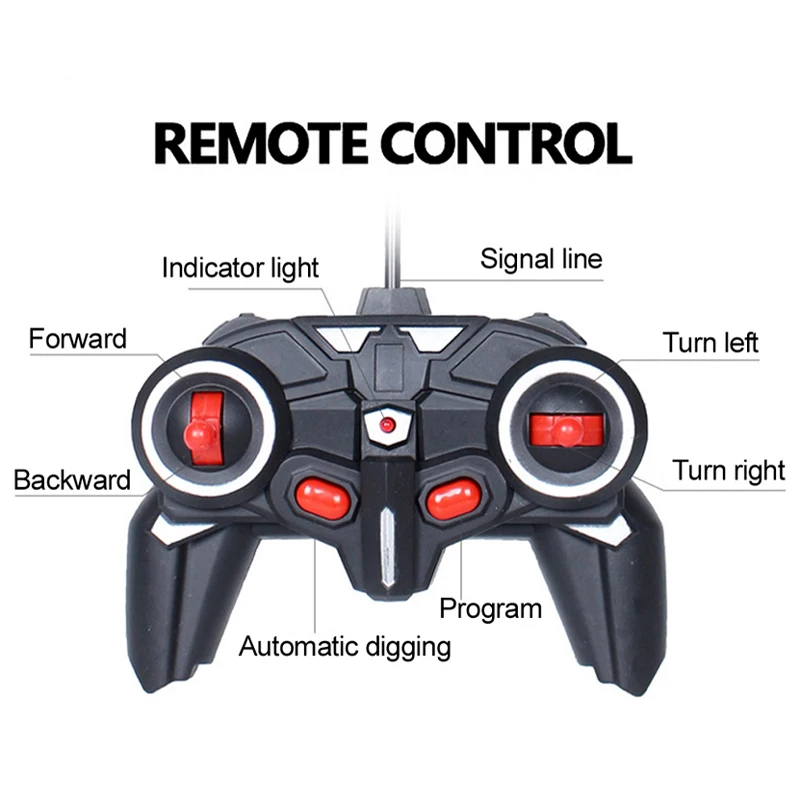 Пропорционально: 1/24 Цвет: желтый, красный, синий, серебристый, голубой, серый Каналы управления: 6CH или 5CH Направление движения: вперед, назад, влево, вправо Функция: поверните переднюю часть и назад, поверните влево и вправо. Рука поднимается и опускается. Имитация звука. Частота передатчика: 2,4G Расстояние управления: около 30-50 м Время работы: около 20-30 минут