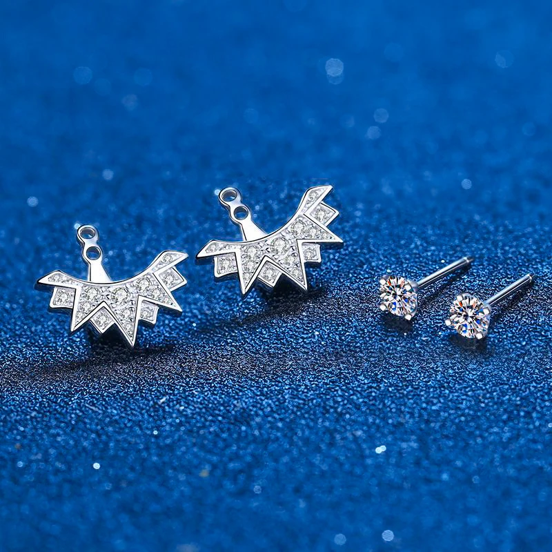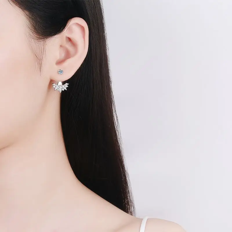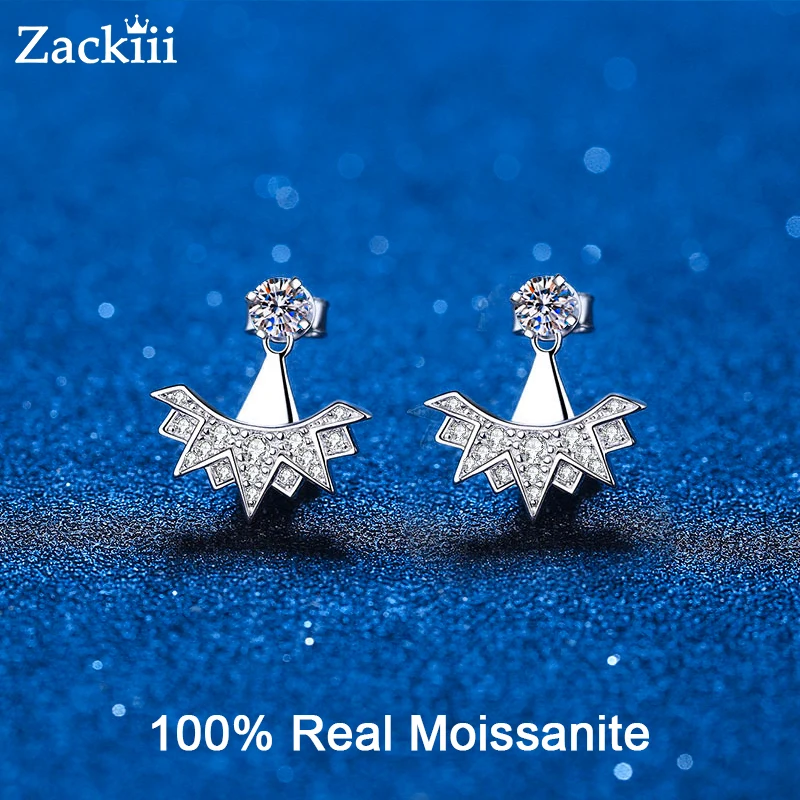 Настоящее серебро Moissanite ухо пиджак с манжетами спереди и сзади серьги-гвоздики для женщин девочек алмазные геометрические серьги манжеты ювелирные изделия
