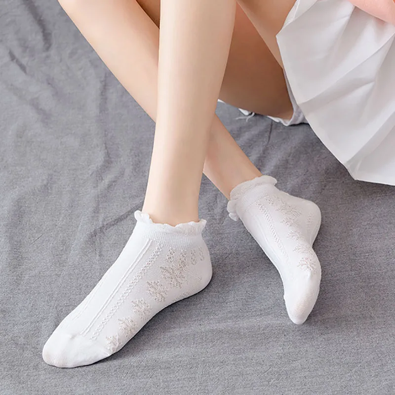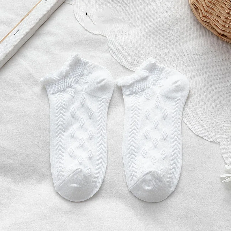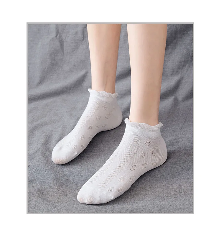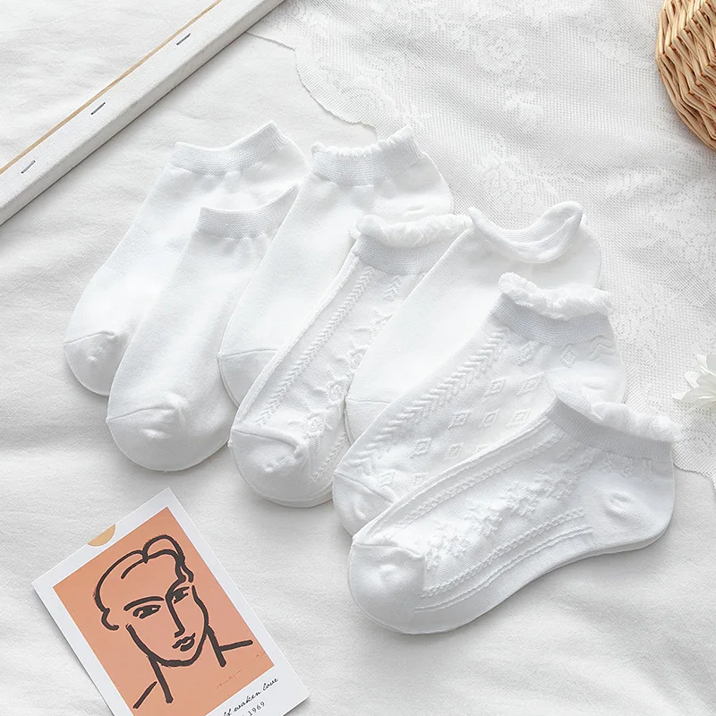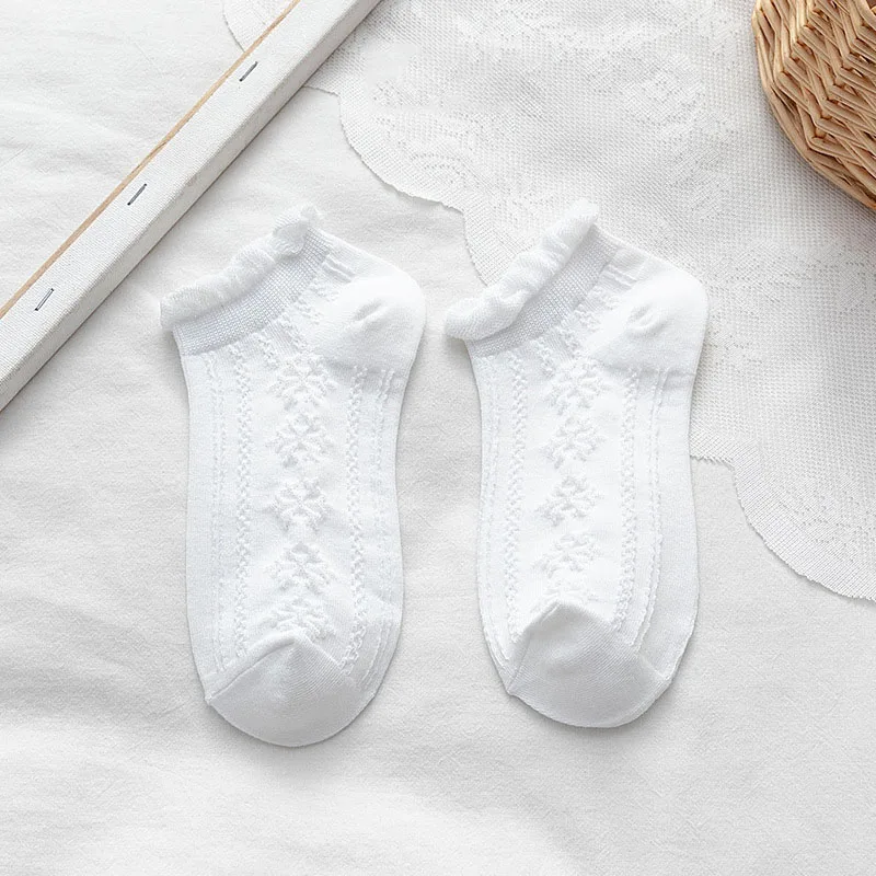 высокие носки женские харадзюку корейский стиль японский стиль длинные хлопок Однотонные белые носки в японском стиле с рюшами в стиле лолита, женские милые носки, женские модные хлопковые носки до щиколотки