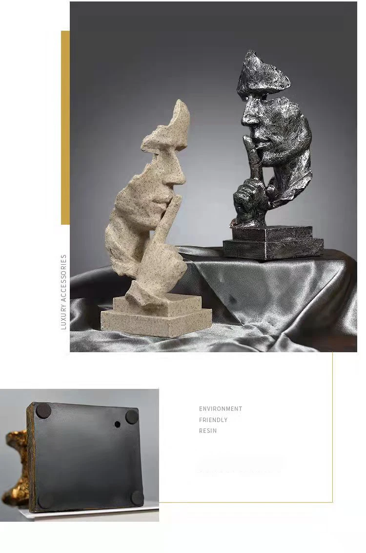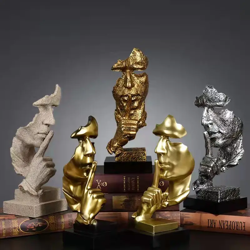 Фигурки из смолы в стиле ретро тишина-золото, оригинальные декоративные аксессуары для интерьера в скандинавском стиле, Декор для дома, гостиной, стола