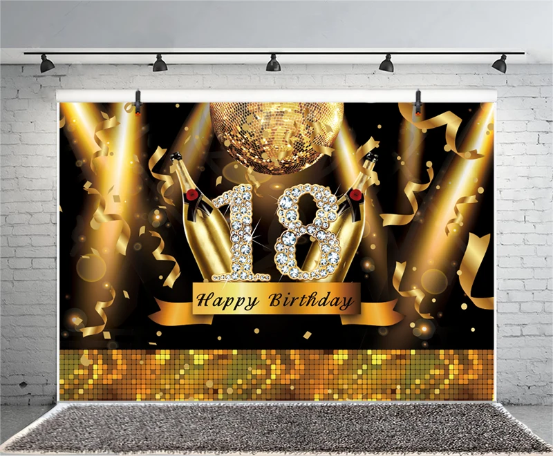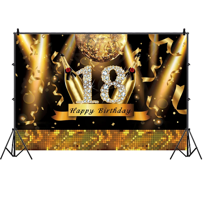 Золотой 18-й фон для фотографий для мальчиков и девочек на день рождения, легкий фон для фотографий, баннер, украшение