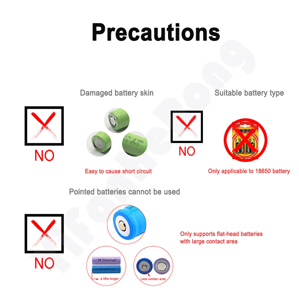 1. Аккумулятор не может использоваться, если наружная кожа повреждена.2. Остроконечные батареи не могут быть использованы, могут использоваться только плоские батареи.3. Напряжение в соответствии с 3,2 V-4,2 V4. Положительные и отрицательные полюсы должны быть размещены и использованы правильно.5. Не используйте и не храните в условиях высокой температуры.