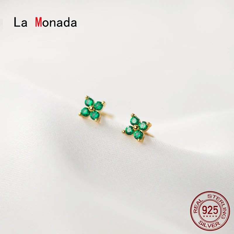 Затычки для ушей: 4 пластиковые затычки для ушей-2 серебряныеПосылка: Пластик коробка (3,5 см * 3,5 см * 1,8 см) в один пакет из пузырчатой пленки (13 см * 15 см)Маленькие цветные серьги-гвоздики La Monada с четырьмя листьями и цветком из стерлингового серебра 925 пробы, милые маленькие серебряные серьги для женщин и девушек18k золото, Платиновое покрытие,