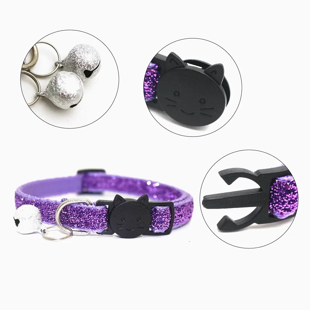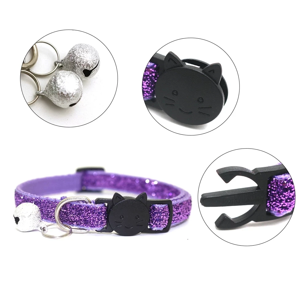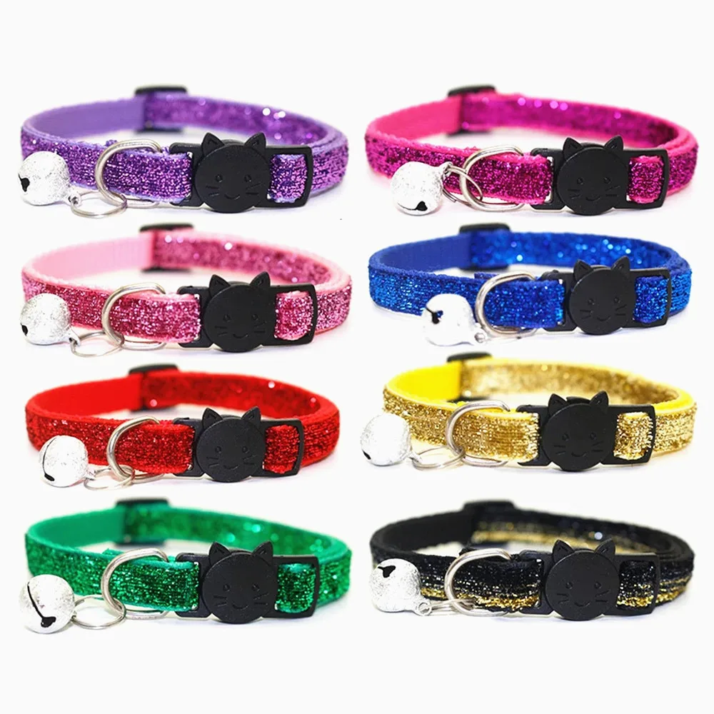 Ошейник для кошек, нейлоновый ошейник для домашних питомцев, 8 цветов, с матовым котом, регулируемый, с колокольчиком