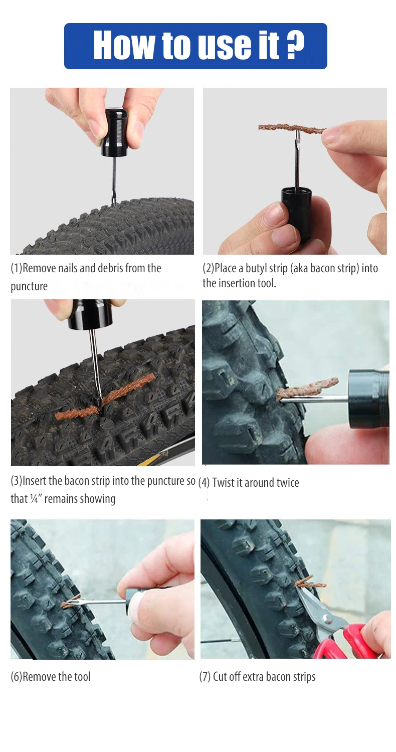 Набор инструментов для ремонта велосипедных бескамерных шин, портативный герметик с резиновой полосой для проколов и плоских фиксаторов