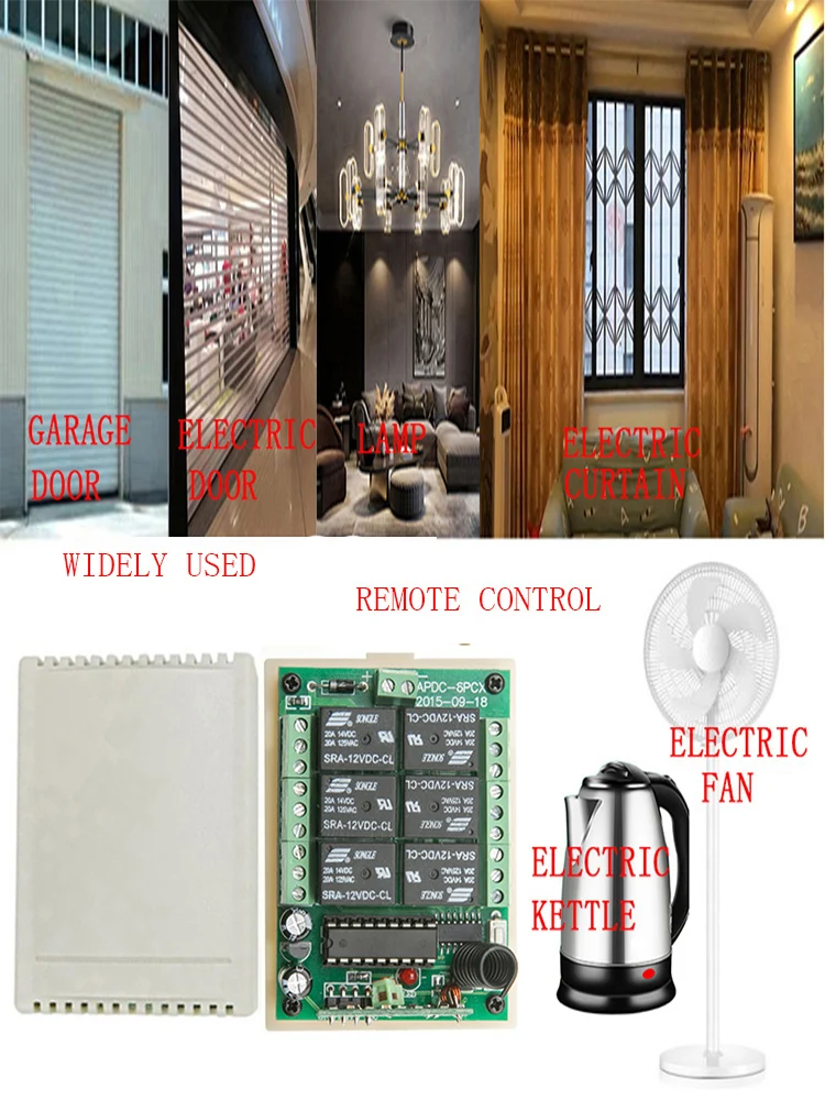 Управление огнями, телевизорами, двигателями, вентиляторами, камерами, видеосигналами, звуковыми сигналами, электрически управляемыми дверями/замками/окнами.