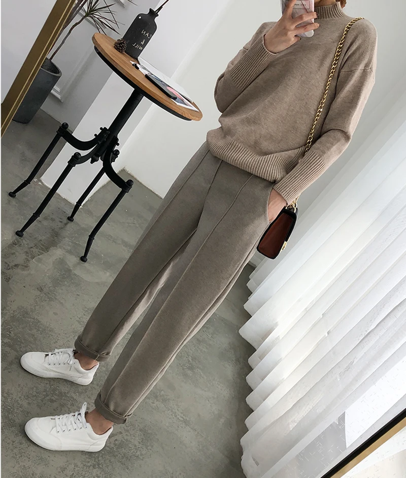 Женские утепленные брюки-карандаш, модель сезона весна-Зима 2021 года, женский шерстяной костюм, брюки свободного покроя, женские брюки, Капри 3XL