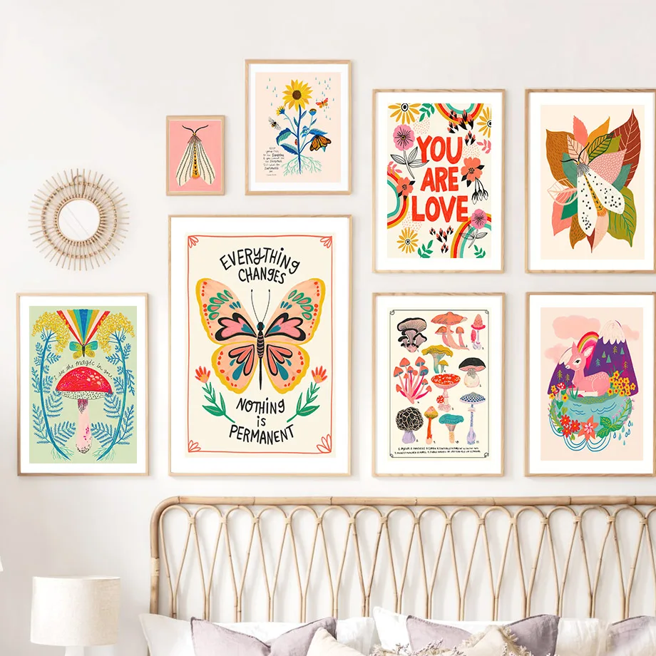 Цветные настенные картины на холсте с изображением оленя, бабочки, пчелы, цветов, мотыли, грибов, плакаты и принты для украшения гостиной