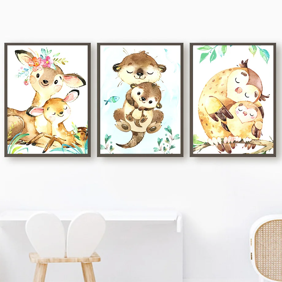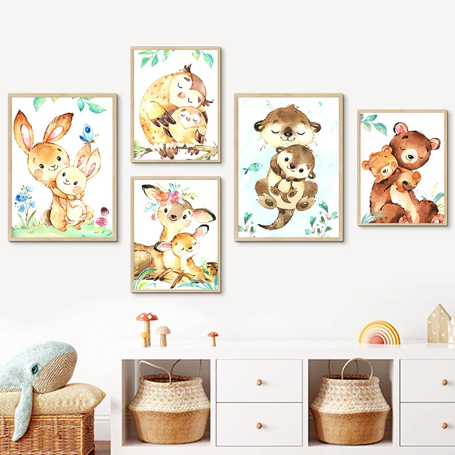 Настенная картина для детской комнаты с изображением оленя, кролика...