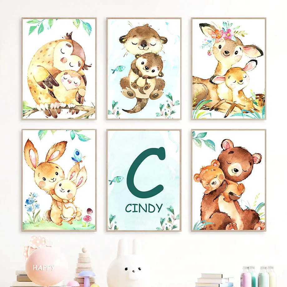 Кролик олень лиса белка енот животные детские постеры и принты в ск...