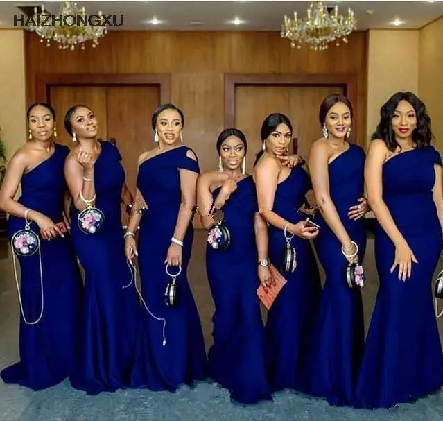 Женское длинное платье подружки невесты, привлекательное Королевского синего платье на одно плечо, официальное платье для вечеривечерние, платье русалки для подружки невесты, 2022