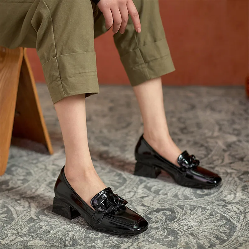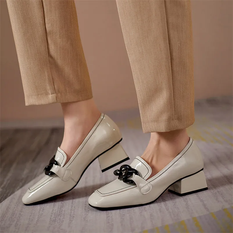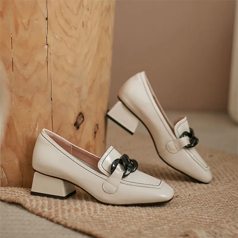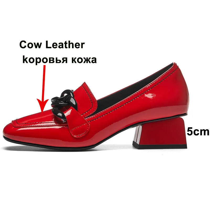 Meotina/Женская обувь; Туфли-лодочки с цепочкой на высоком каблуке из натуральной кожи; Модная обувь на толстом каблуке; Модельные туфли с квадратным носком; Сезон весна; 42