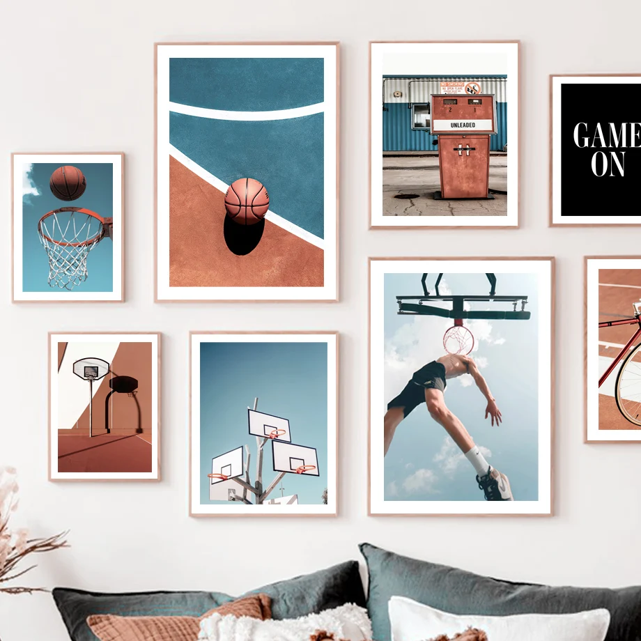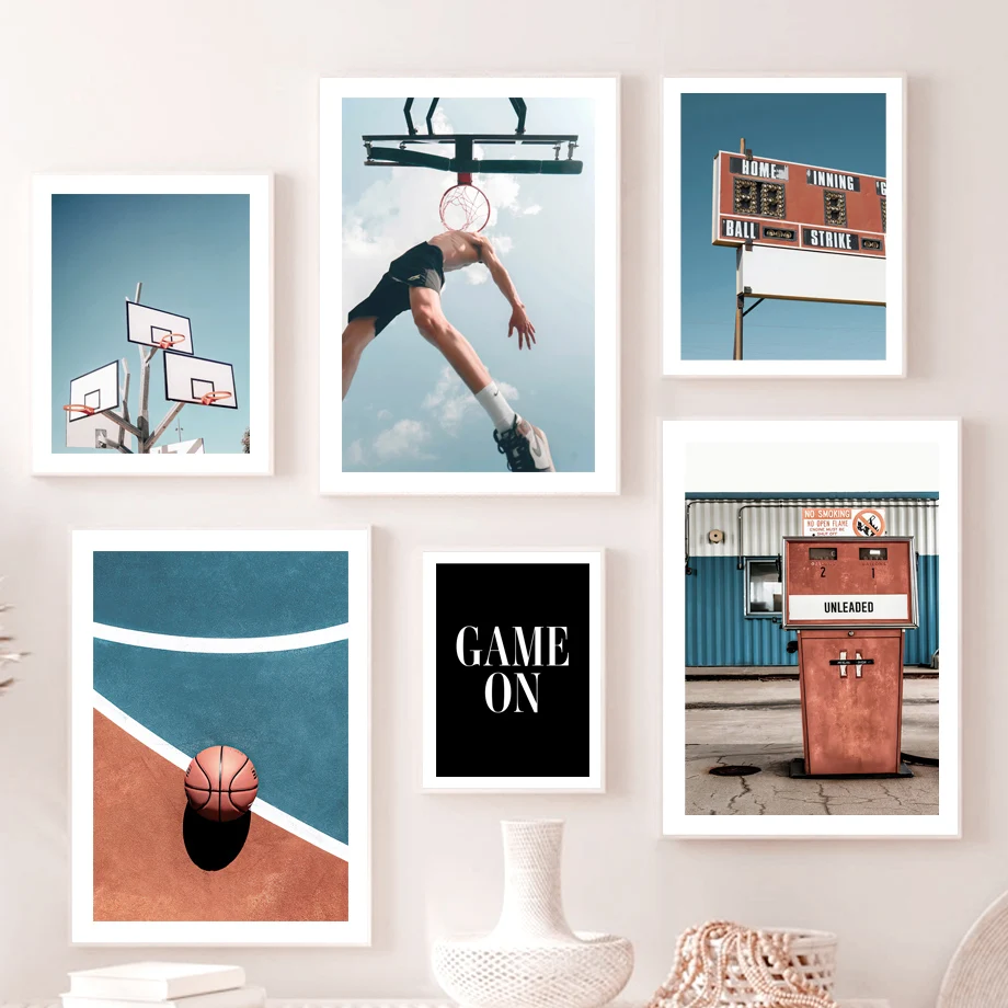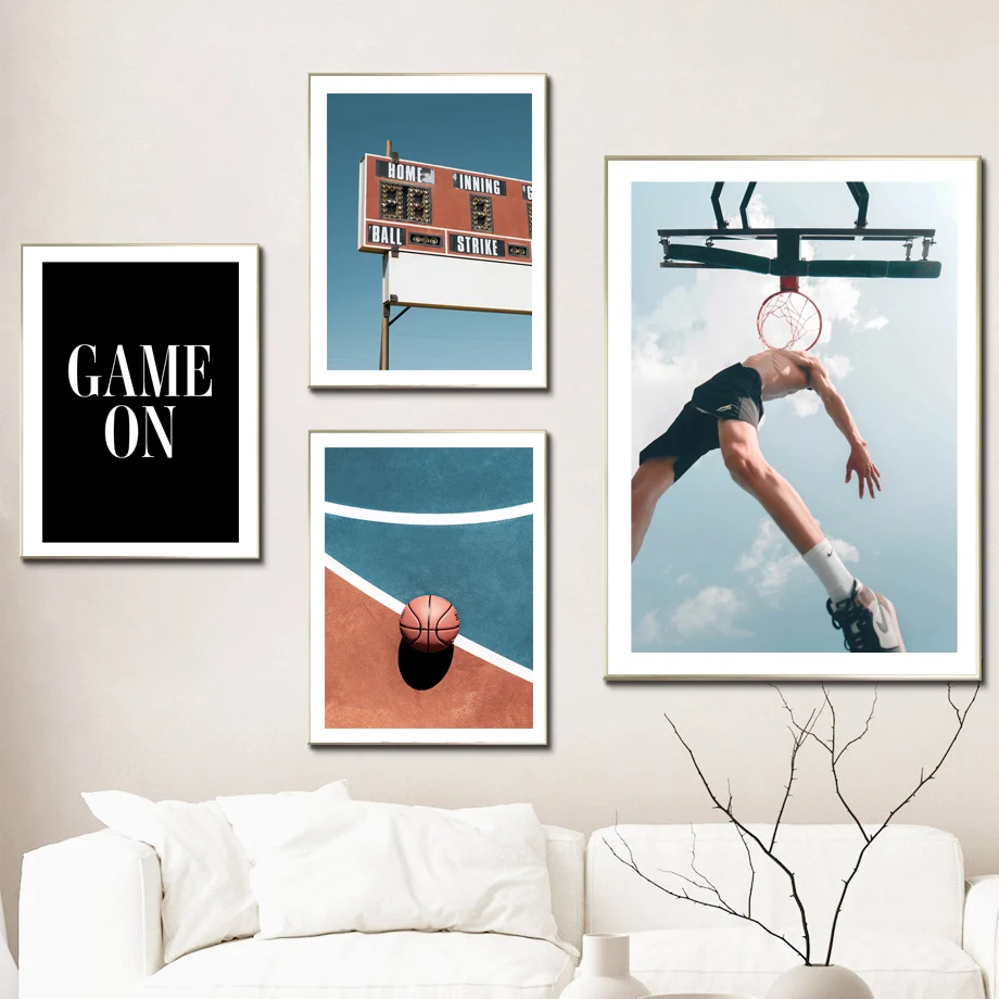Настенная Картина на холсте с изображением баскетбольной площадки для занятий спортом и фитнесом, скандинавский постер и принты, настенные картины для декора комнаты подростков и стадиона