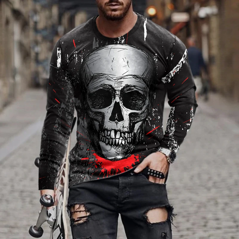 Новинка 2022, Мужская футболка для отдыха Ssports с 3D Цифровым принтом, уличная трендовая модная футболка для фитнеса, пуловер, эластичный обтягивающий череп