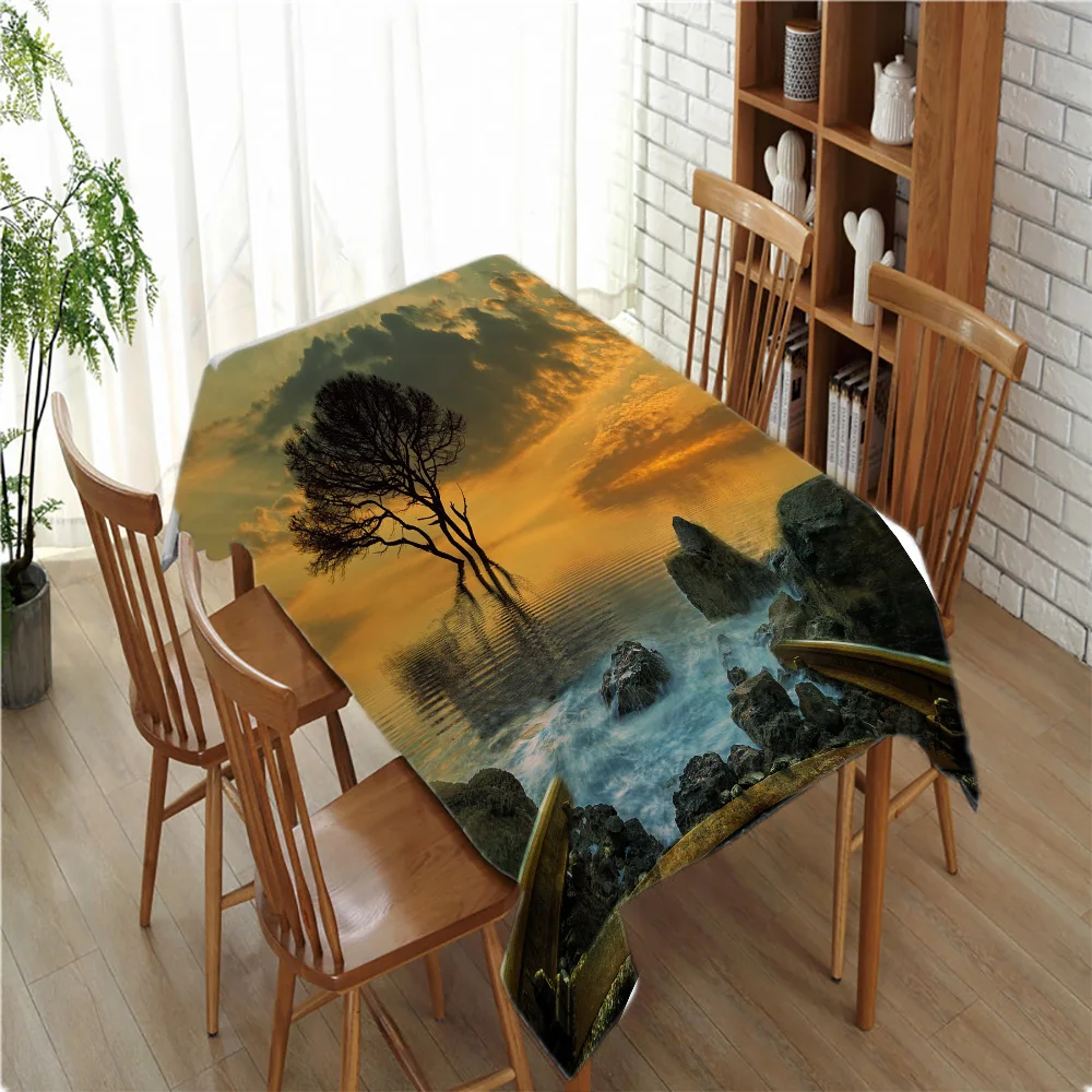 Скатерть из полиэфирной ткани, прямоугольная, против пятен, Пыленепроницаемая, для новогоднего домашнего стола, вечерние, Декор