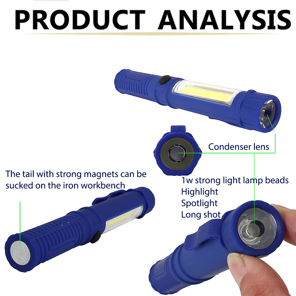1 шт. Многофункциональная портативная мини-ручка с монолитным блоком светодиодов, рабочее освещение, Светильники для осмотра, магнитное основание, водонепроницаемая ручка для кемпинга и велоспорта