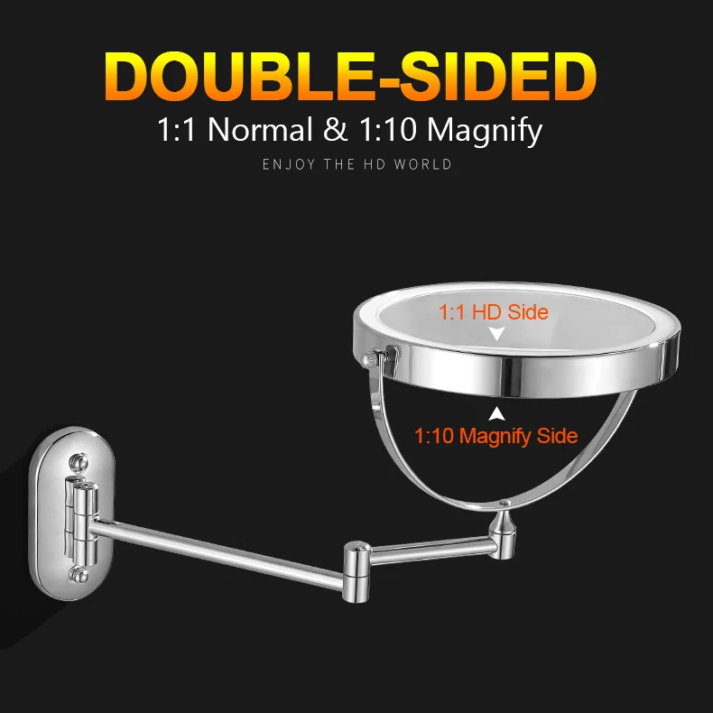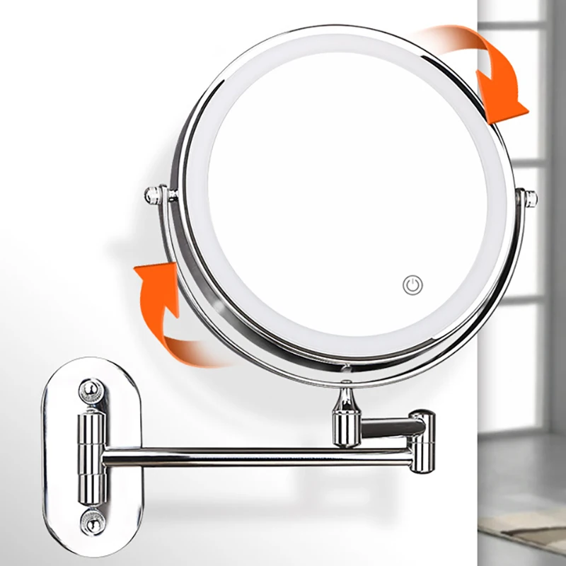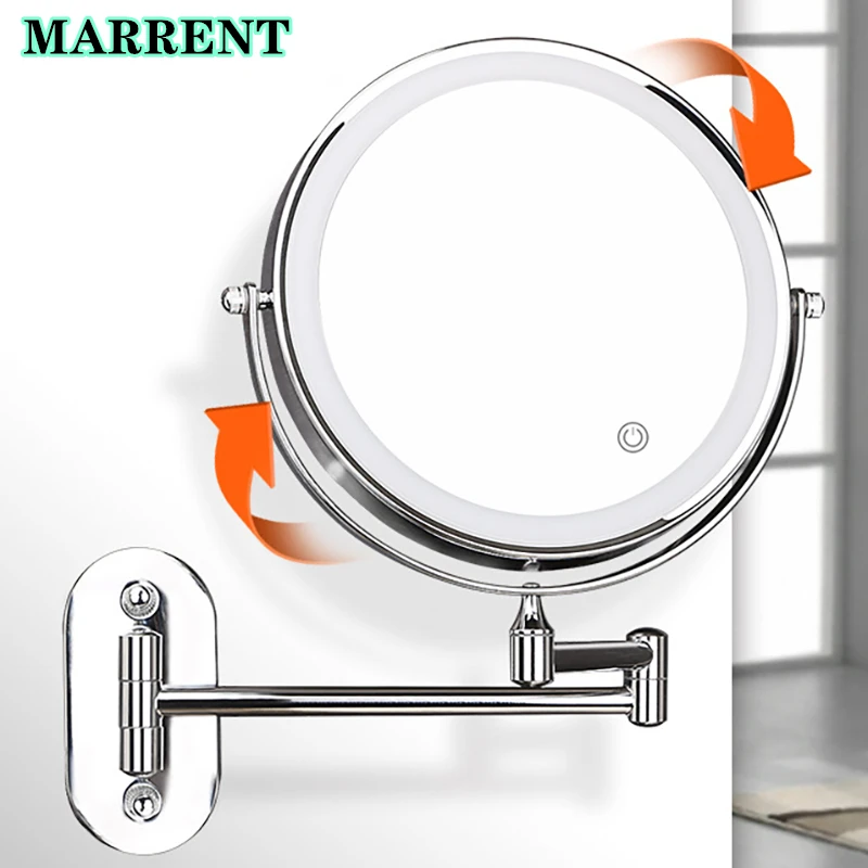 Зеркало для ванной со светодиодной подсветкой, складное качественное металлическое зеркало для ванной с двойным рычагом и светодиодный чением 3X 5x