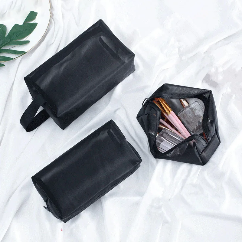 Прозрачная черная сумка для макияжа для путешествий, несессер, косметика, Женская сетчатая маленькая большая прозрачная косметичка