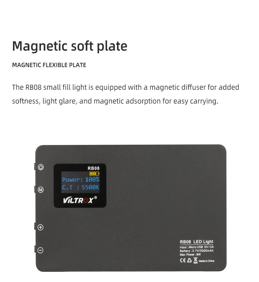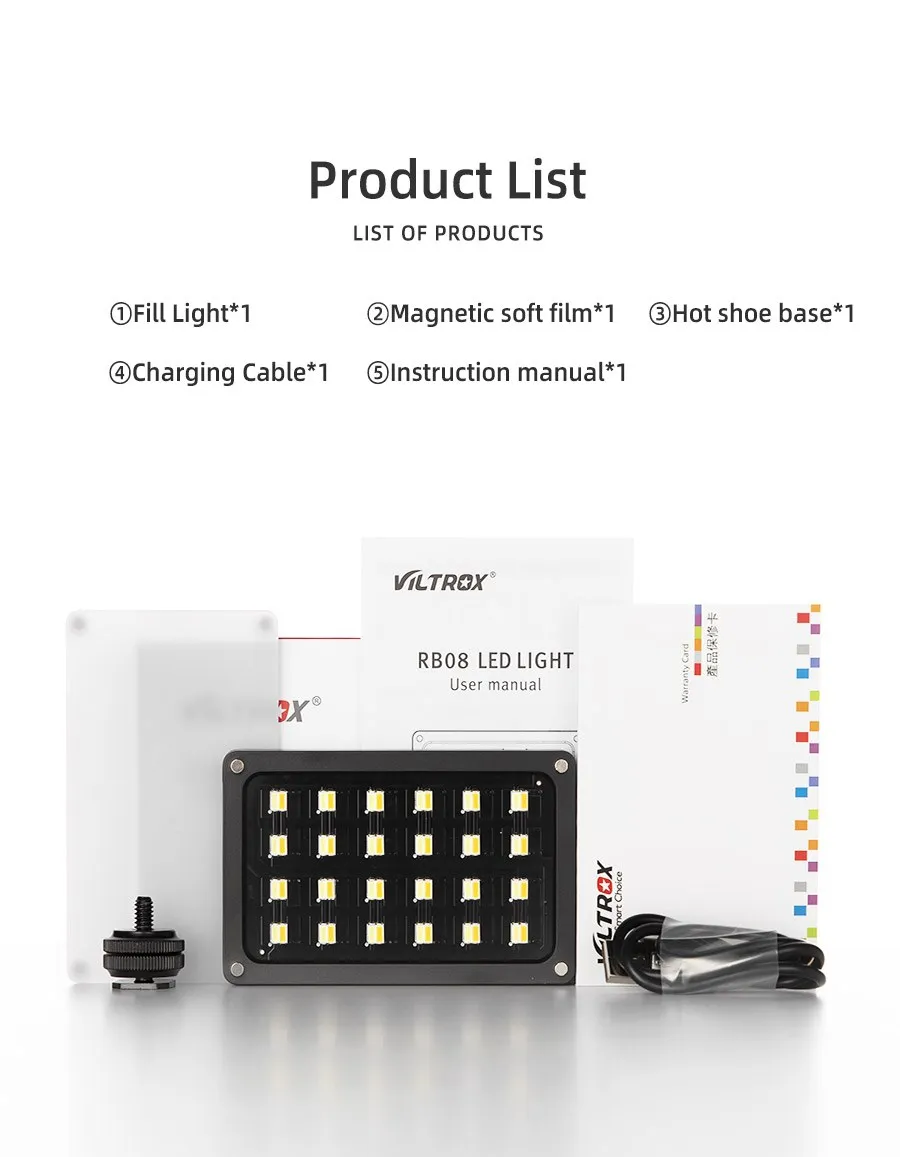 Viltrox RB08 двухцветный 2500K-8500K мини видео светодиодный свет портативный заполнясветильник со встроенной батареей для телефона камеры студийной съемки