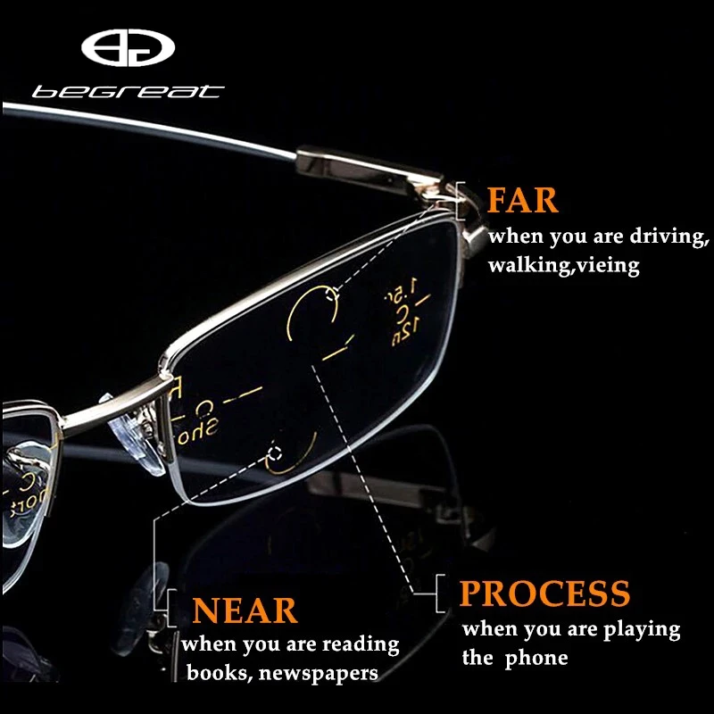 Многофокальные очки для чтения BEGREATTitanium, мужские прогрессивные бифокальные очки с защитой от сисветильник, очки для дальнозоркости с полуободковой оправой