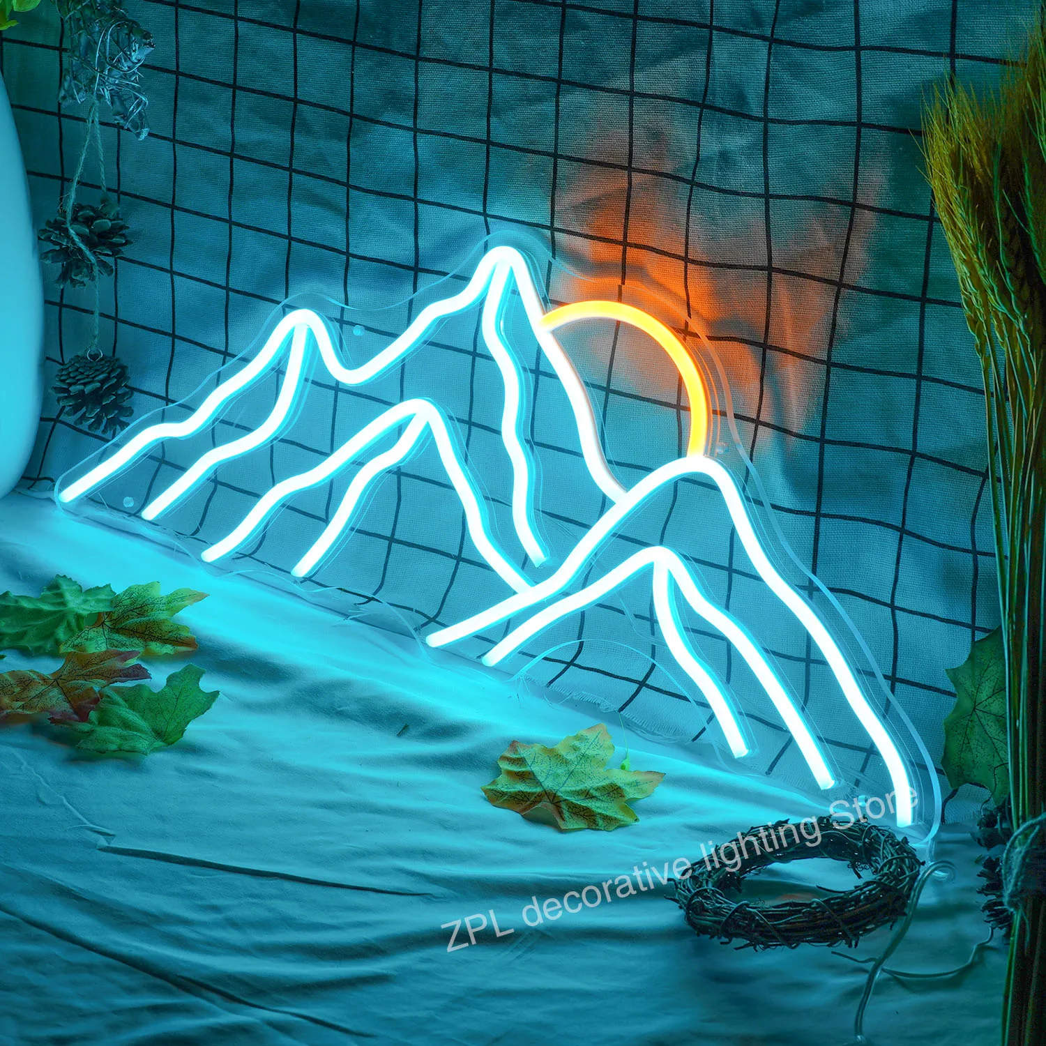 Неоновая светодиодная вывеска на заказ, домашний декор с изображением гор и восхода солнца, Настенная декоративная неоновая лампа для комнаты, бара