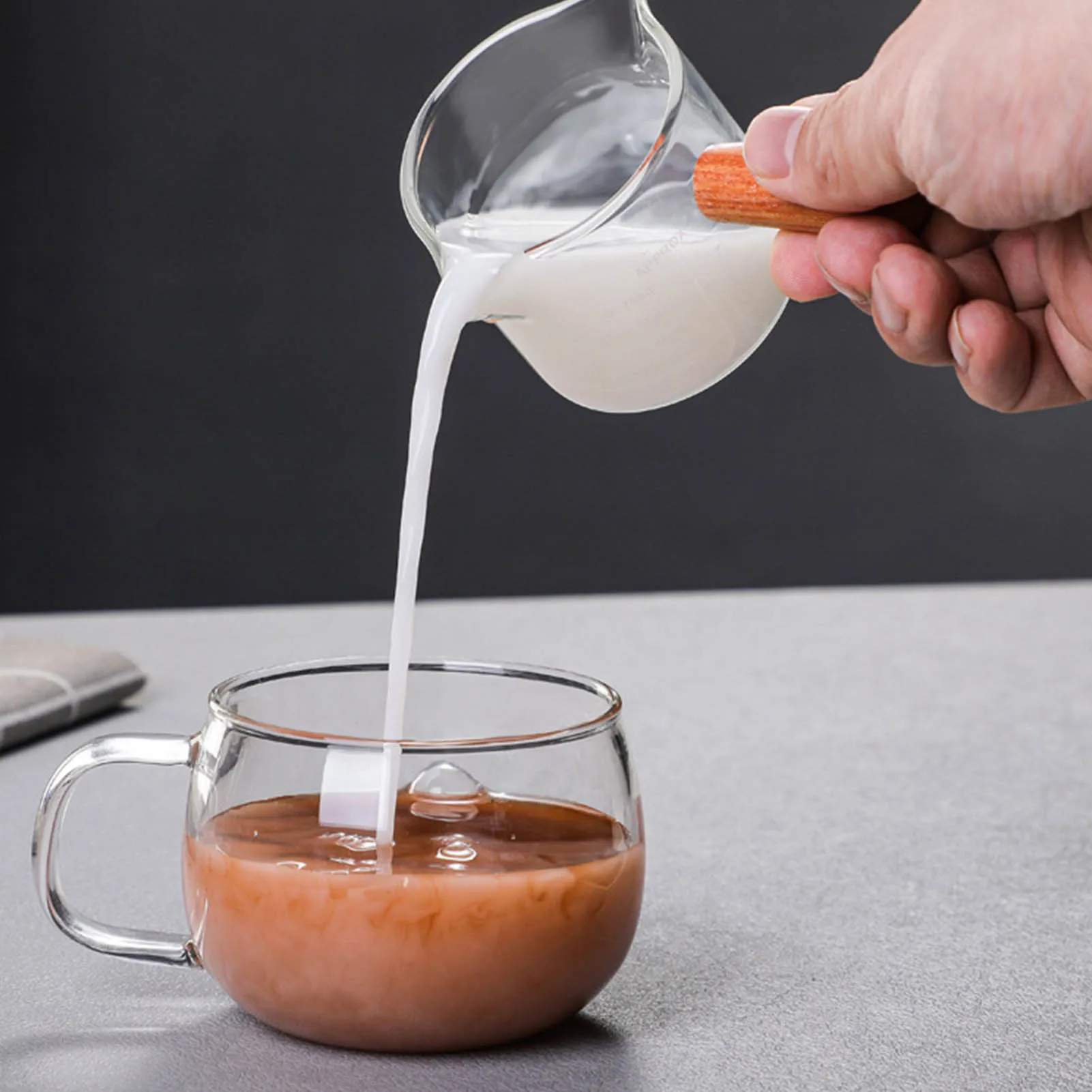 Стеклянная чашка для эспрессо, измерительный стакан с двумя выемками, для приготовления эспрессо, ликера, с деревянной ручкой