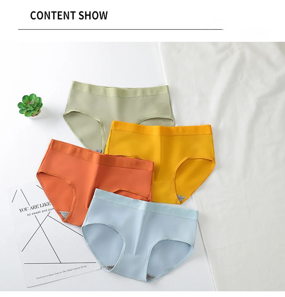 Женское нижнее белье в японском стиле, однотонные трусики со средней талией, дышащие женские трусы макарон, бесшовное нижнее белье, женское нижнее белье