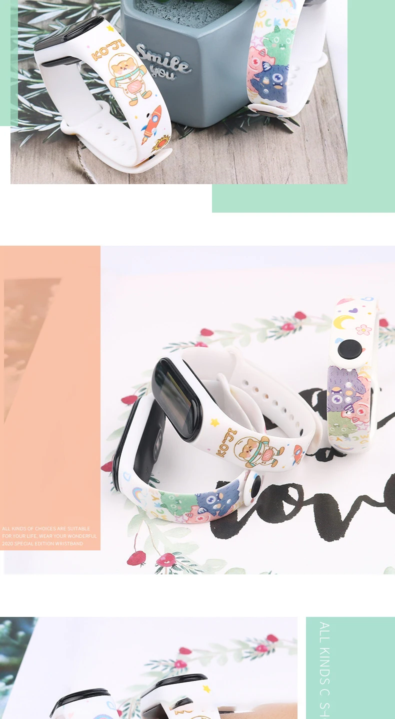Одежда с изображением покемона Пикачу браслет Xiaomi Mi Band 3/4/5/6 силиконовые спортивные Водонепроницаемый Замена цветочные печати поддельные из двух частей личности ремень в подарок