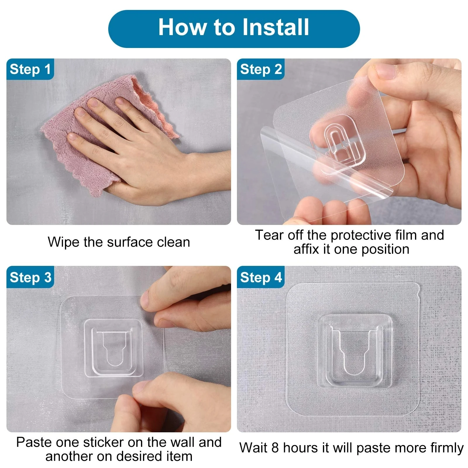 Двухсторонняя клейкая настенная вешалка, Прочные прозрачные крючки,...