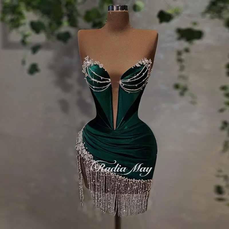 Элегантное бархатное мини-платье изумрудно-зеленого цвета, коктейльные платья 2022, роскошное короткое платье с бахромой из бисера для выпускного вечера, вечерние платья на день рождения