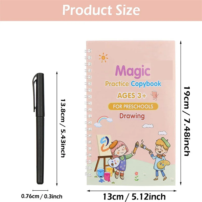 Посылка включает в себя: 4 x рукописные английские волшебные книги (1 сложение и вычитание + 1 картинка + 1 буква + 1 номер) И 1 автоматическая ручка для выцветания (1 держатель для ручки + 1 коробка для ручек + 8 заправок).