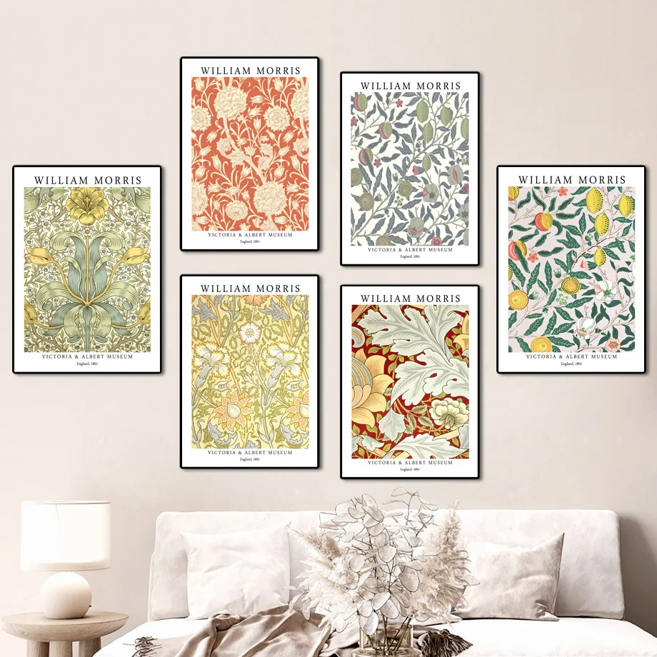 Уникальные постеры в скандинавском стиле с изображением цветов и листьев Вильяма Морриса в стиле ретро, настенная живопись на холсте, настенные картины для декора гостиной