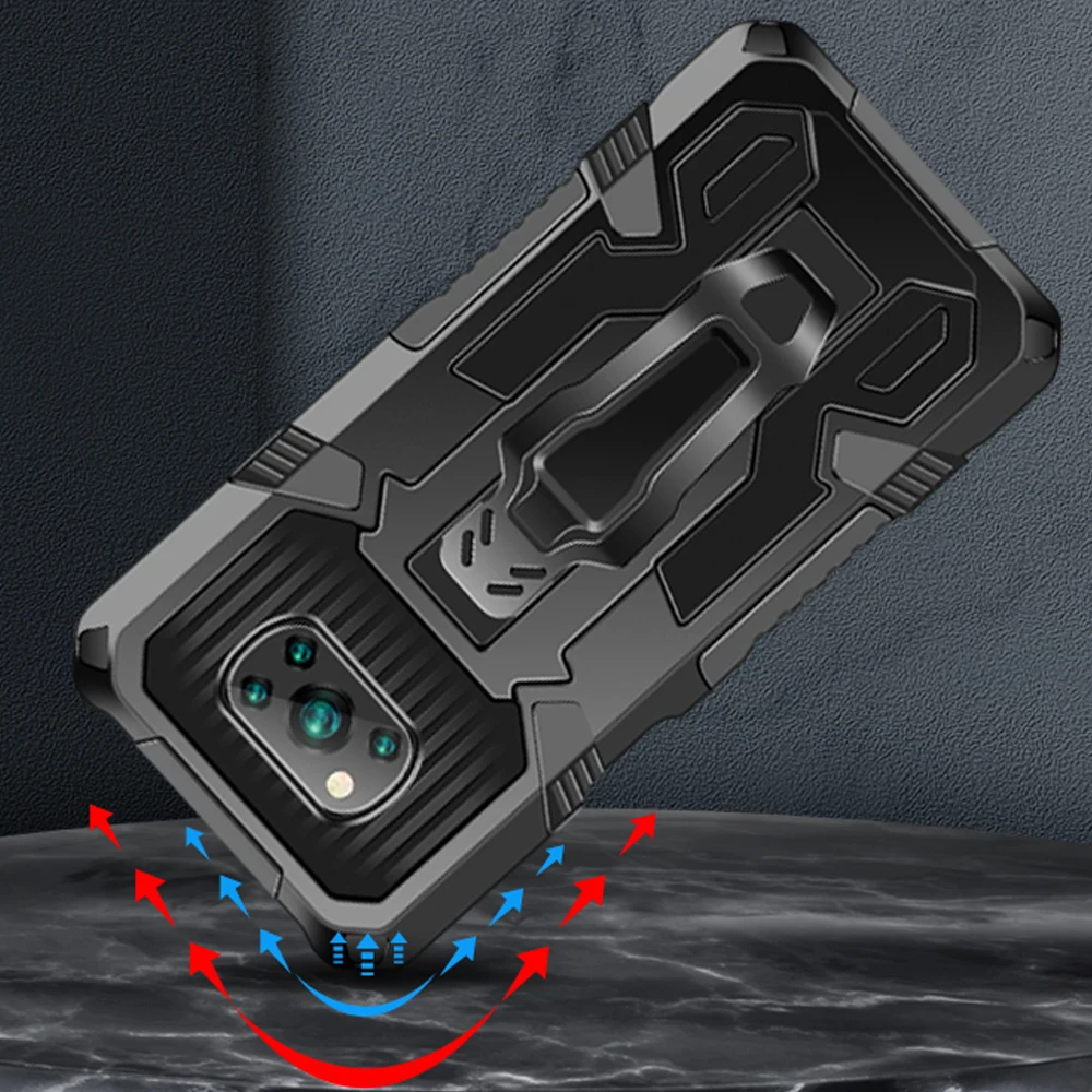 Бронированный чехол для Xiaomi POCO X3 NFC, ударопрочный чехол с за...
