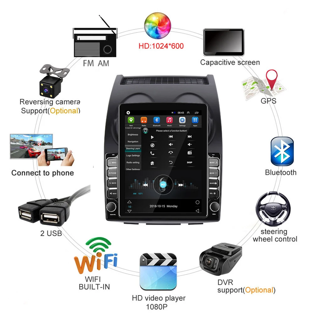 Screen resolution1024*600 2 din car radio