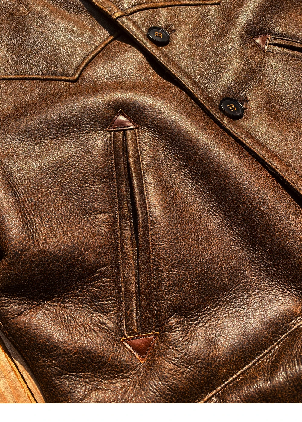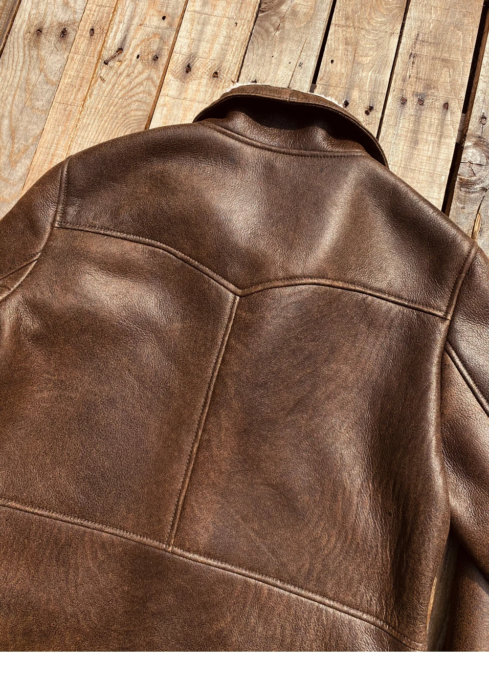 Мужская приталенная куртка SD135 из воловьей кожи, винтажная куртка...