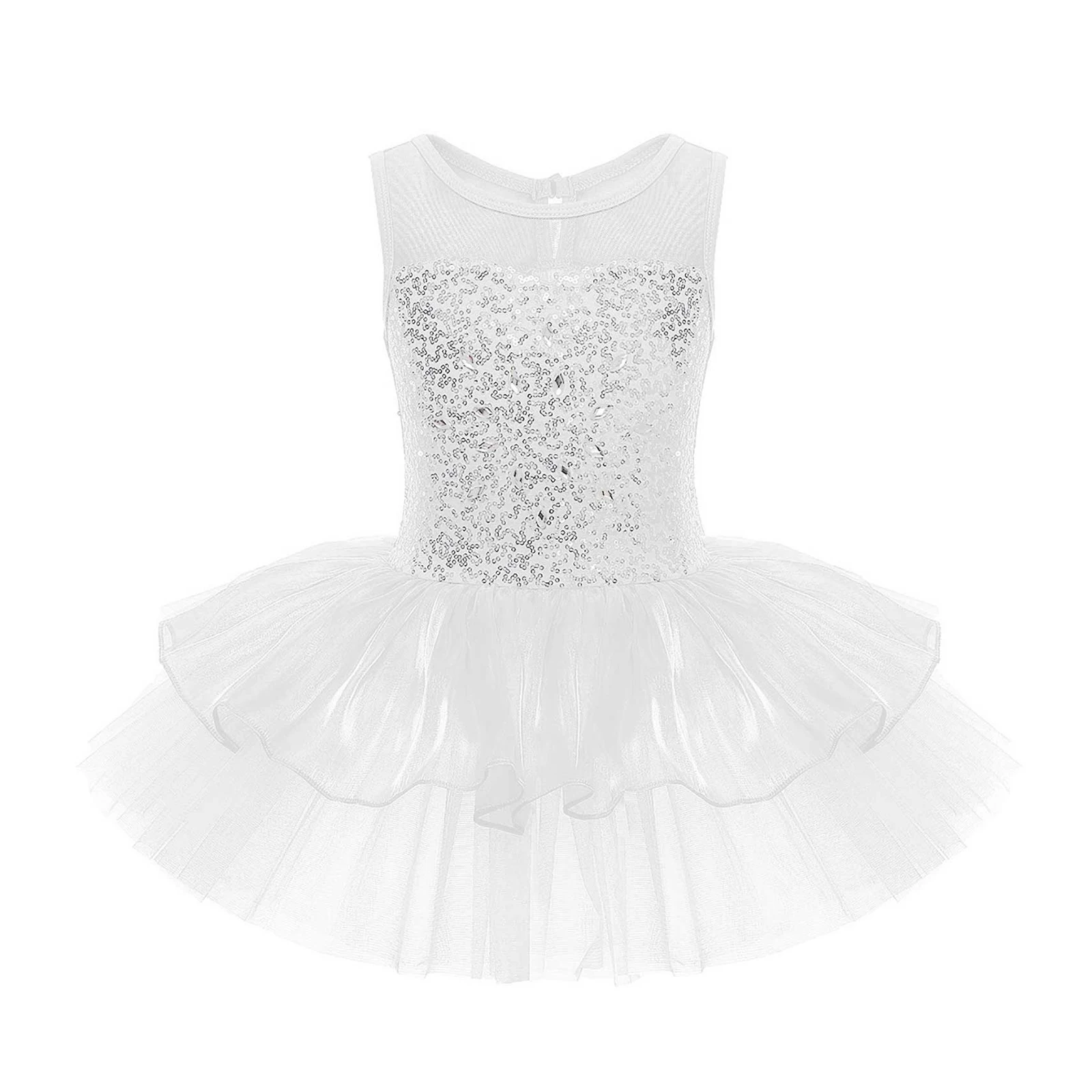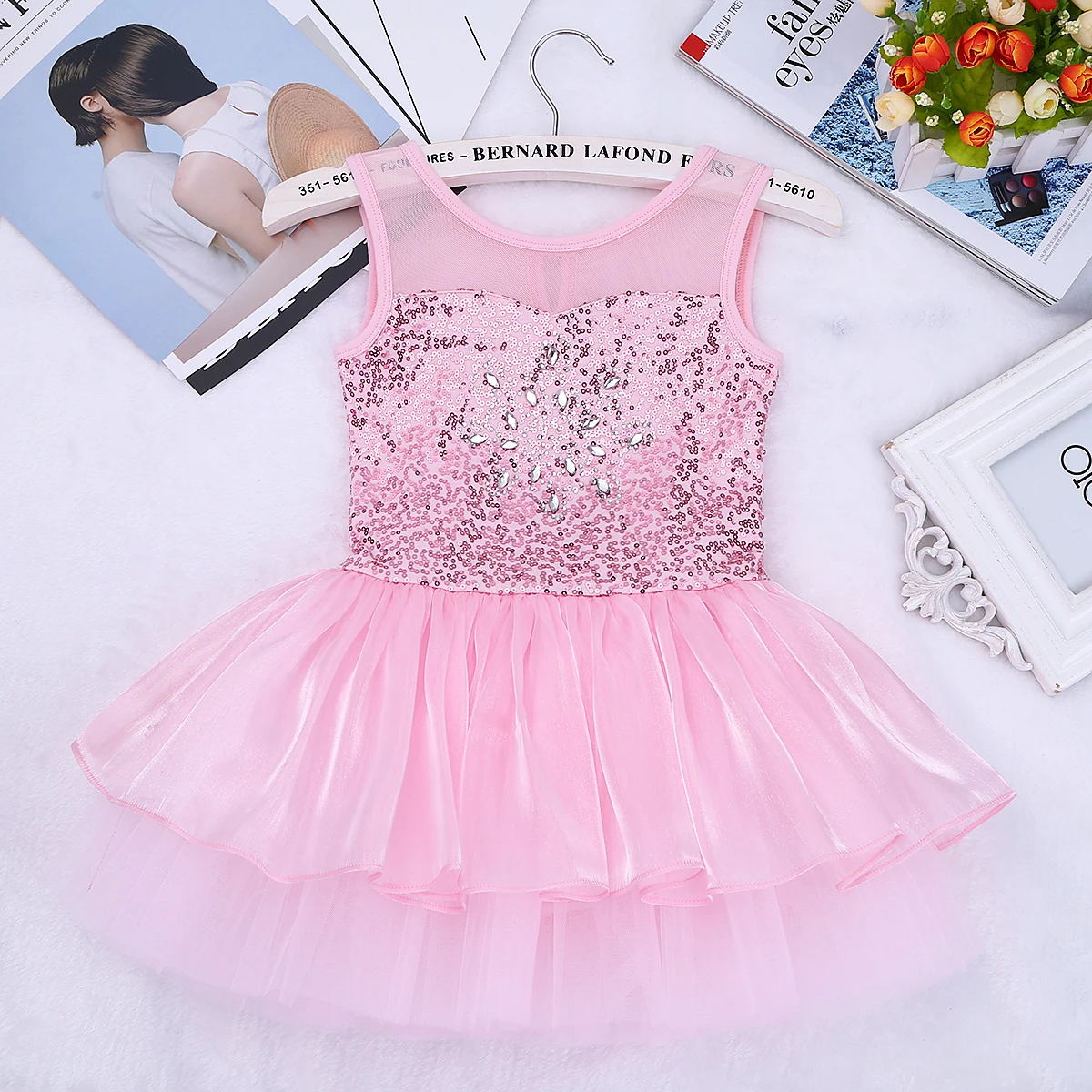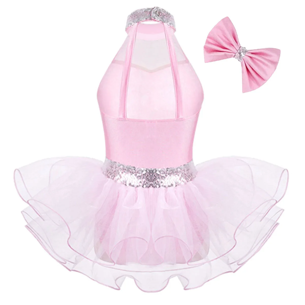 Балетное платье-пачка для девочек, сетчатый купальник с блестками для балерины, гимнастические танцевальные костюмы, танцевальные платья с лямкой на шее