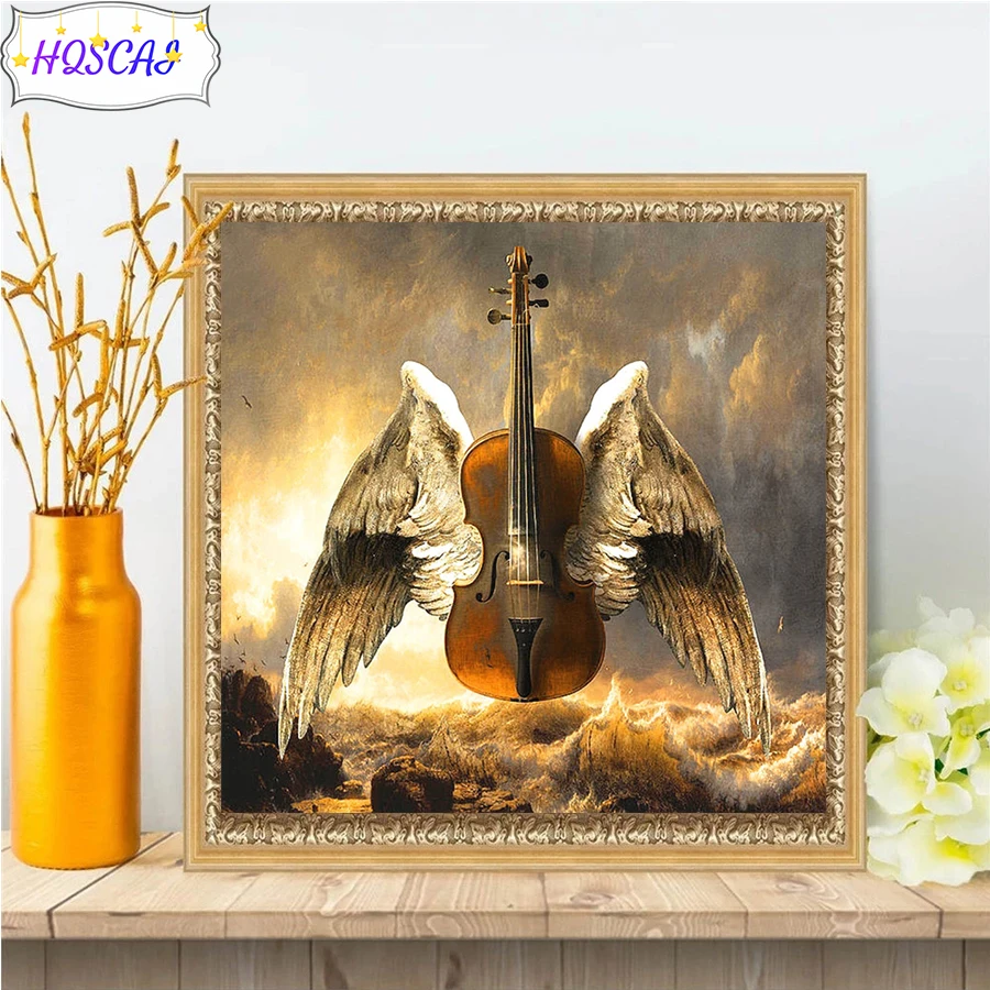 Полный круг, алмазная живопись, абстрактная скрипка, крылья, алмазная вышивка, картина для украшения дома