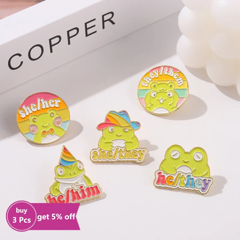 Мультяшная лягушка, эмалированная булавка, красочная Радужная шляпа...