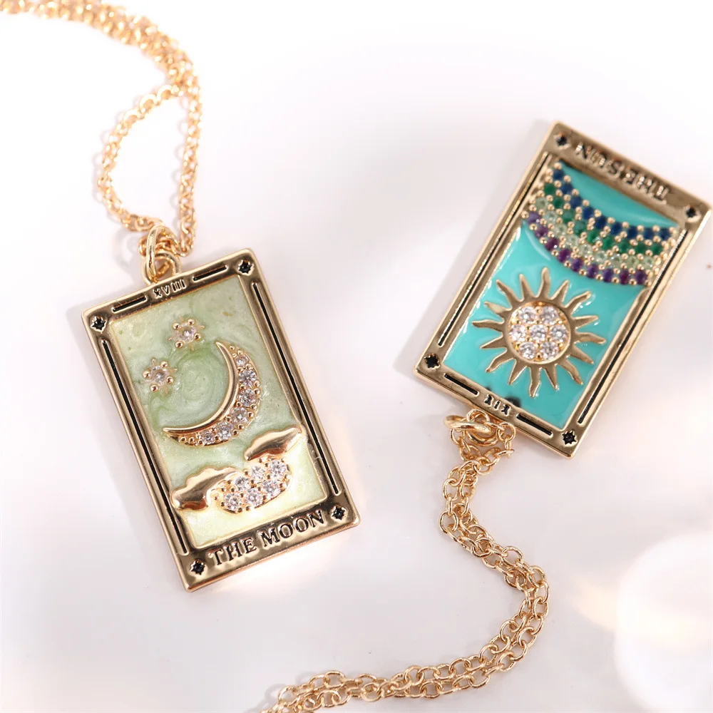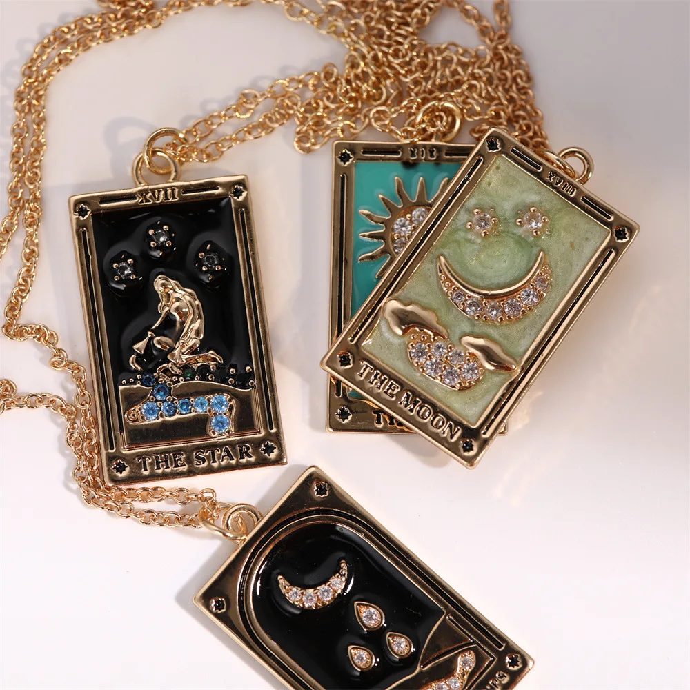 Женское винтажное ожерелье-Таро из нержавеющей стали с эмалью